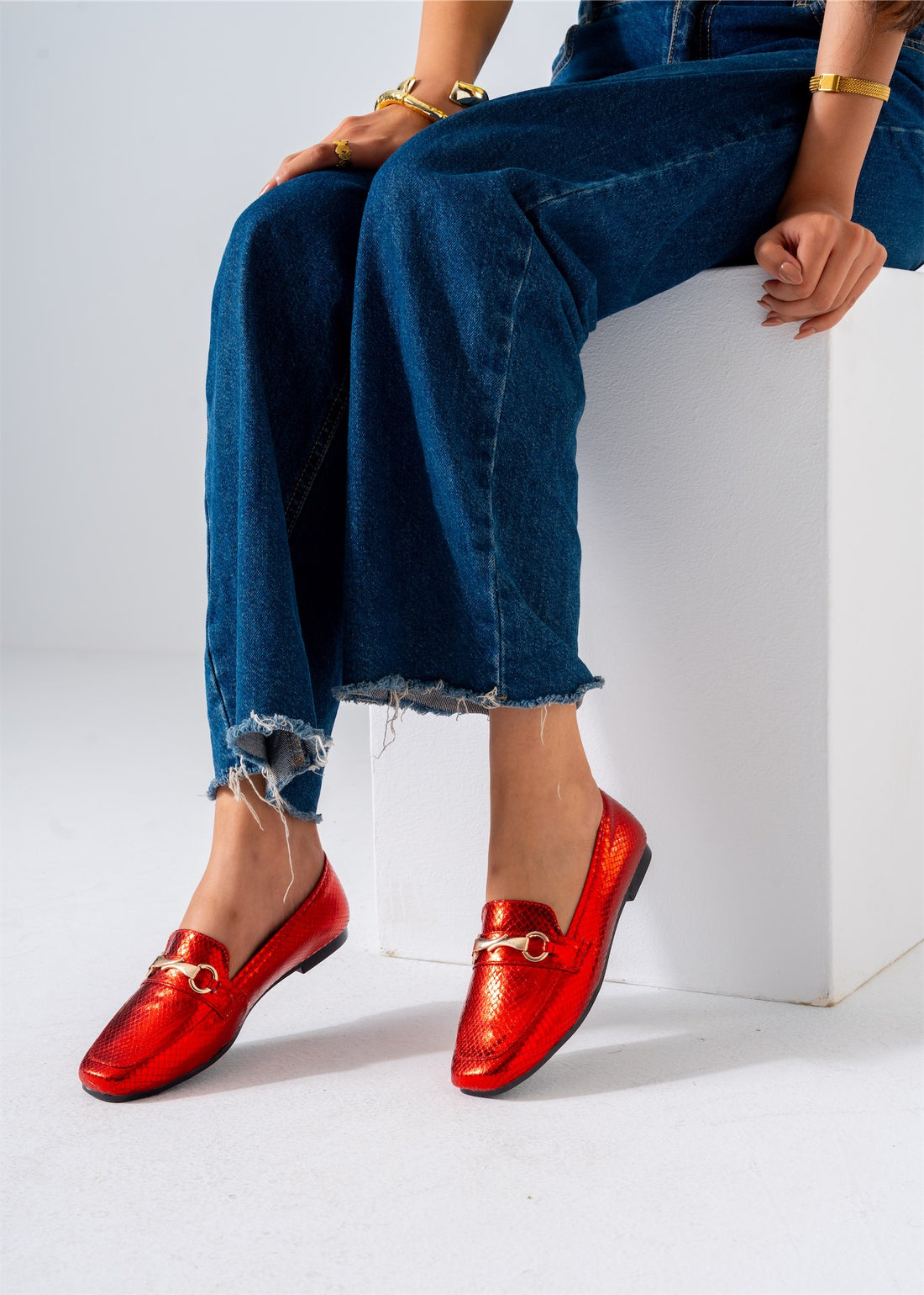 Metallic Snake Flats combine sleek design with subtle shimmer, crafted to elevate your footwear collection....
