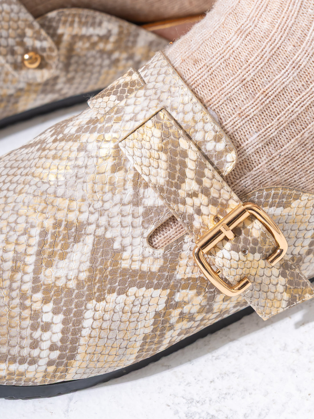 Textured Snake-Effect Buckle Clogs - BEIGE