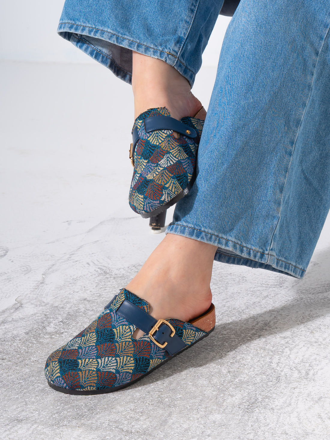 Bohemian Patterned Buckle Clogs - MARRON