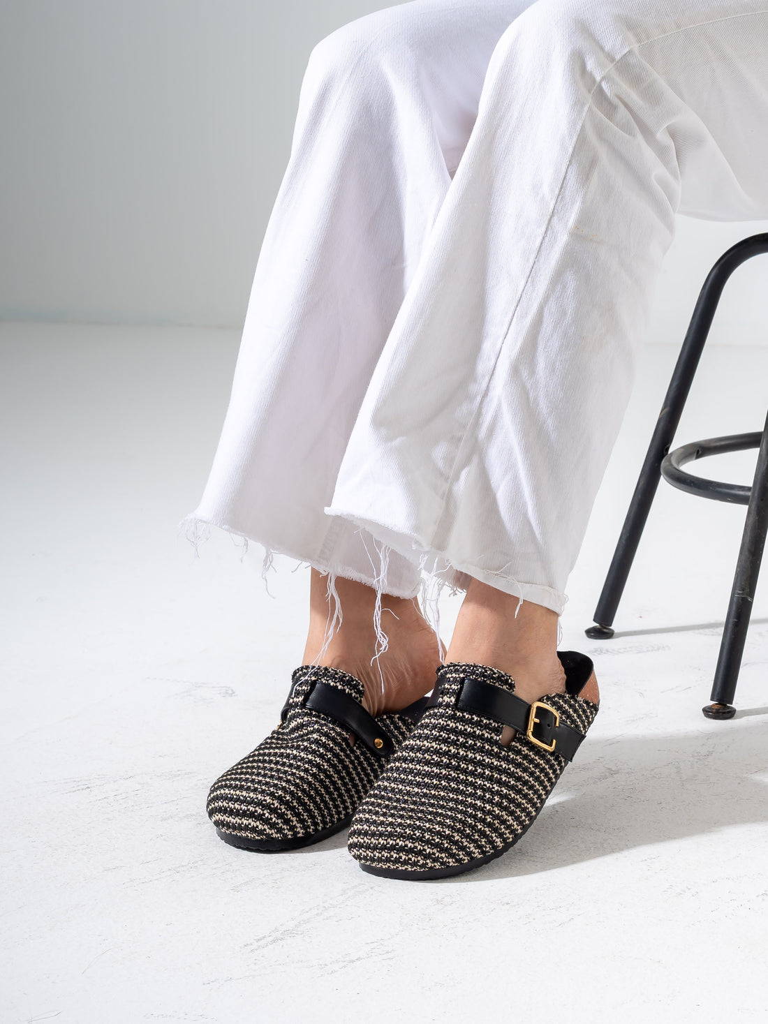 Tweed Buckle-Strap Clogs - BLACK