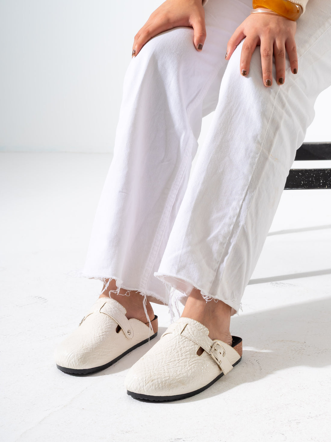 Textured Snake-Effect Buckle Clogs - WHITE