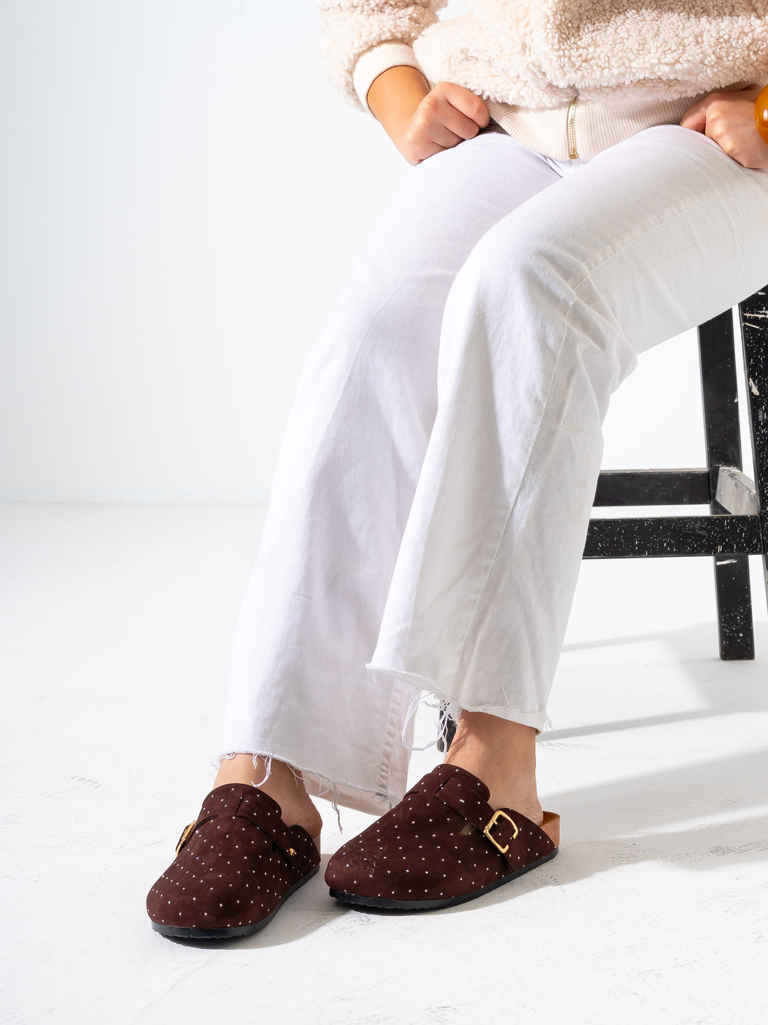 Micro-Studded Faux-Suede Clogs - BROWN