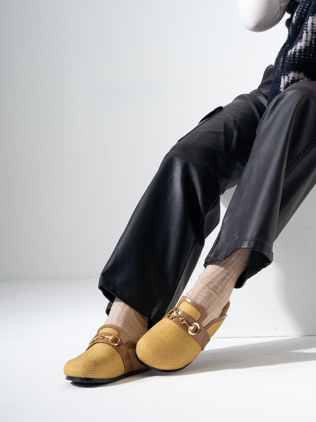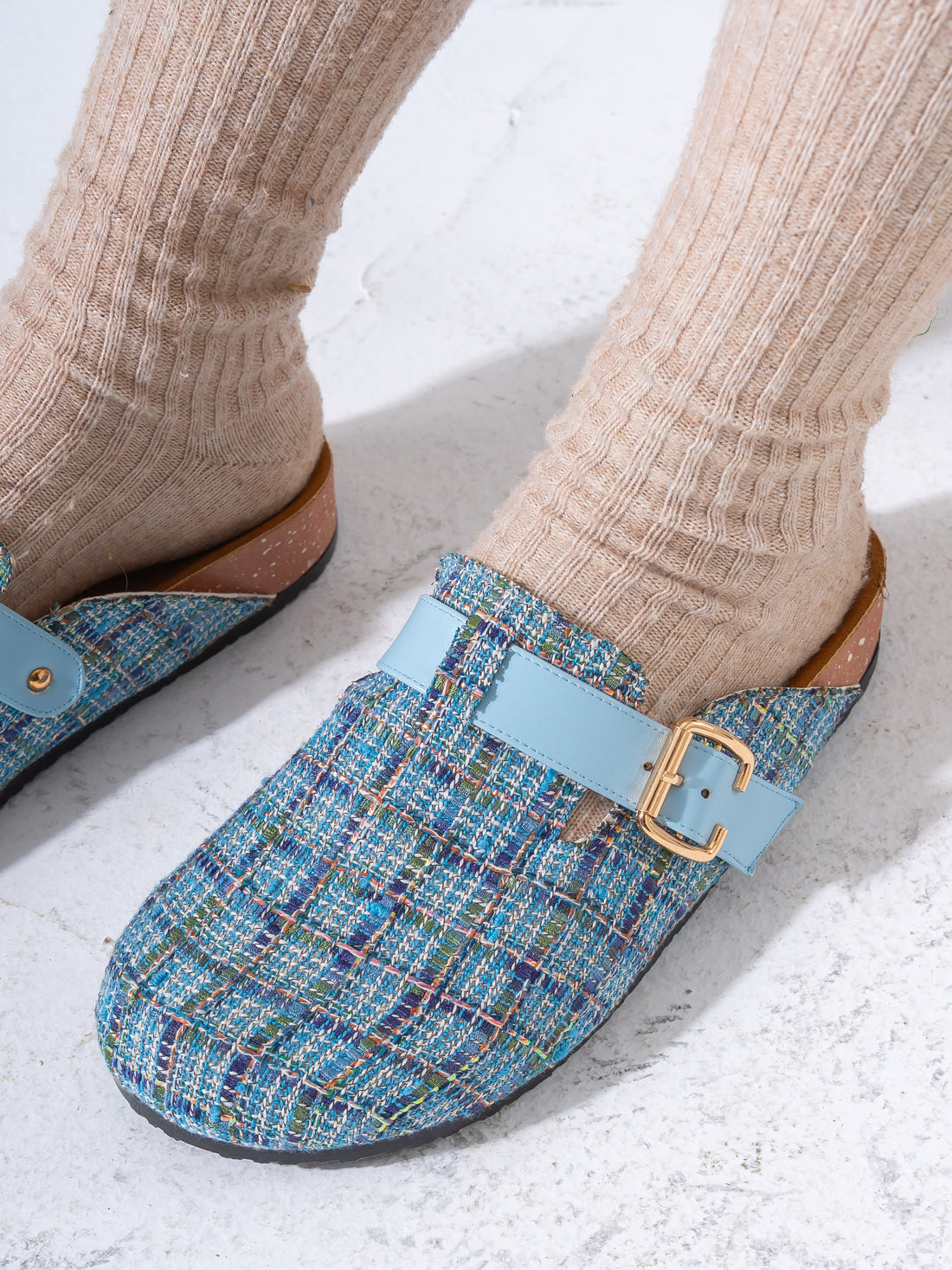 Textured Tweed Buckled Clogs Crafted from premium tweed fabric, these clogs deliver sophisticated style with...