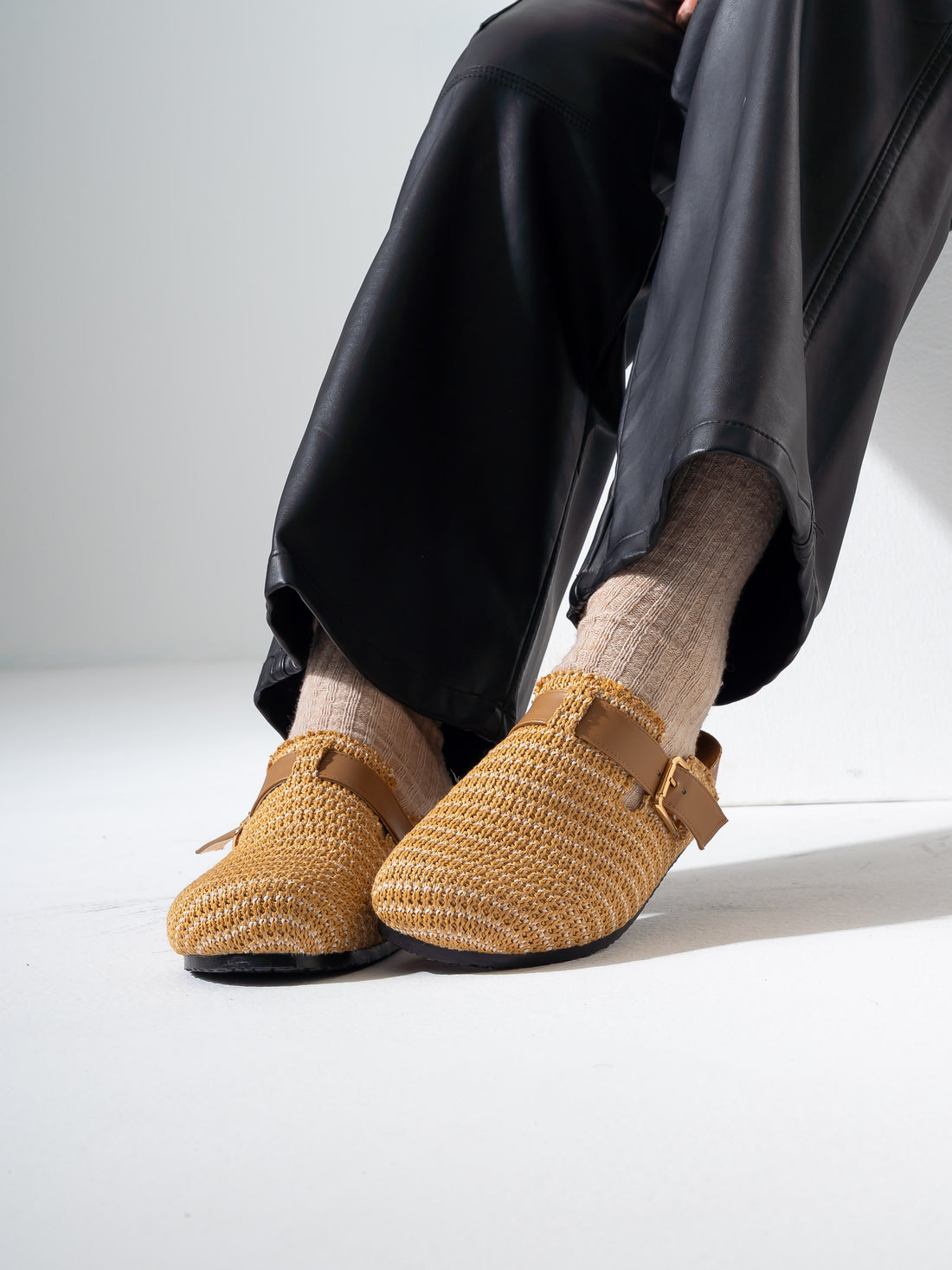 Step into a world of texture and tradition with our Artisanal Woven Clogs. These mules...