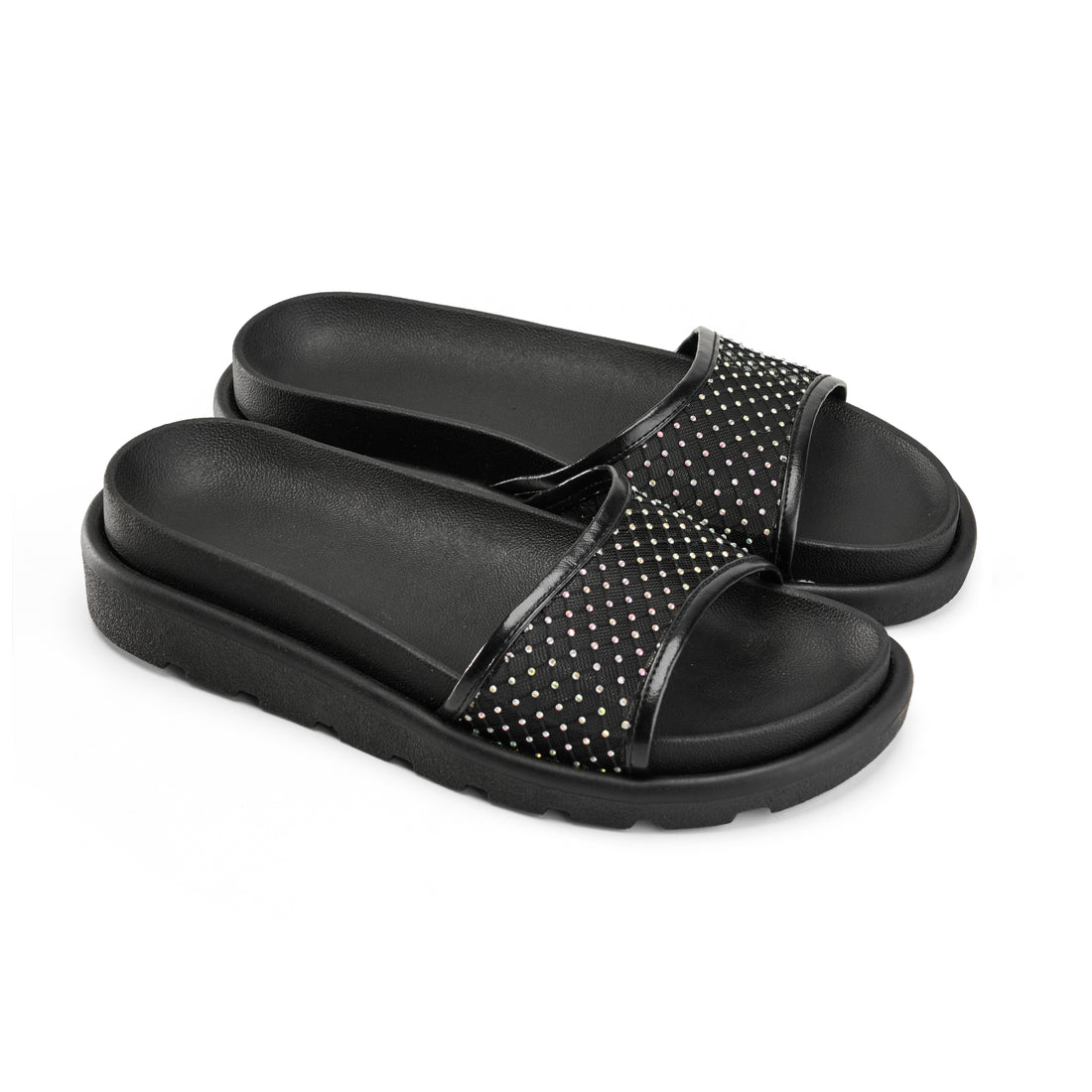 Elevate your footwear collection with these Mesh Wide Strap Platform Slippers in black. Designed for...