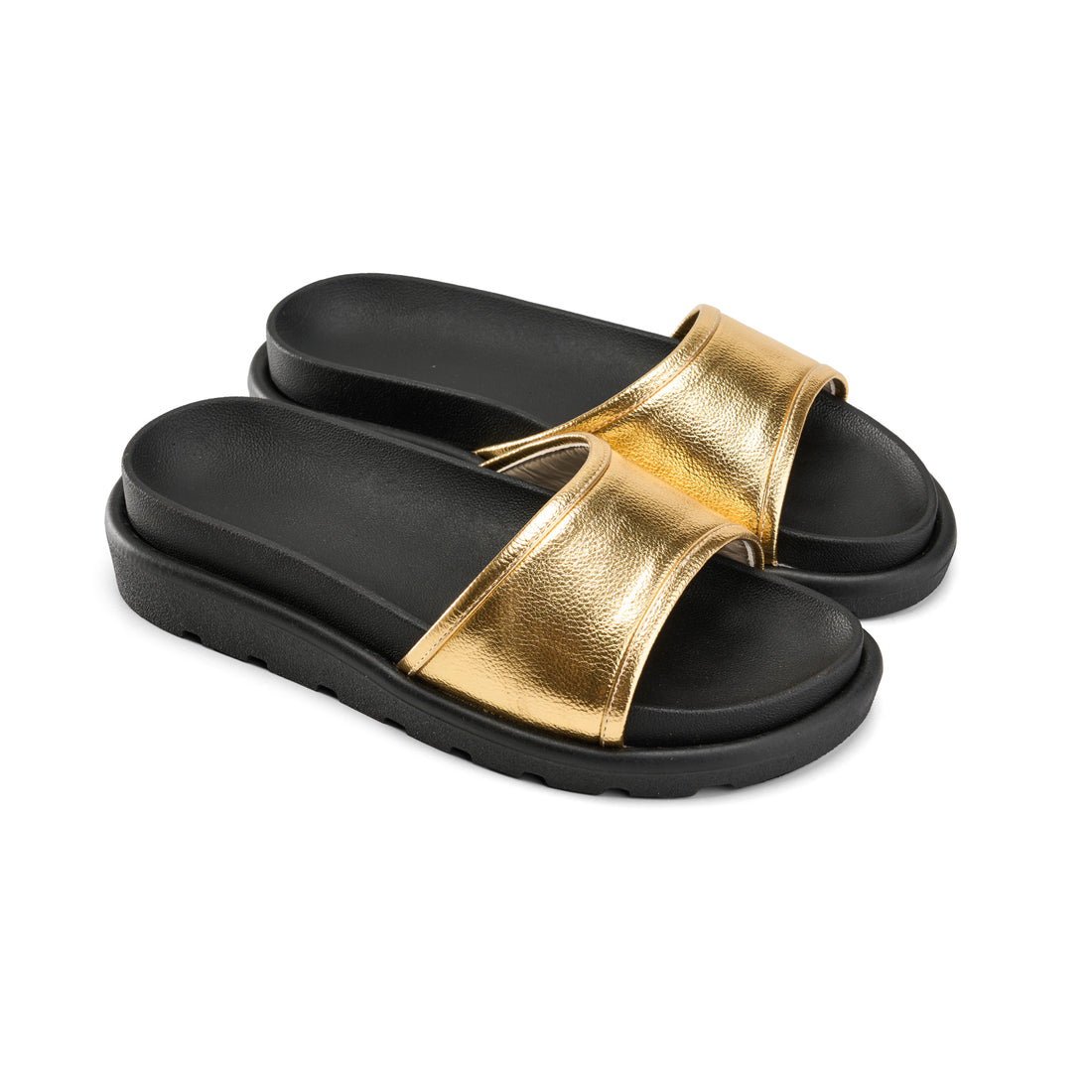 Elevate your footwear collection with the Linear Strap Slipper in Gold. Designed for both style...