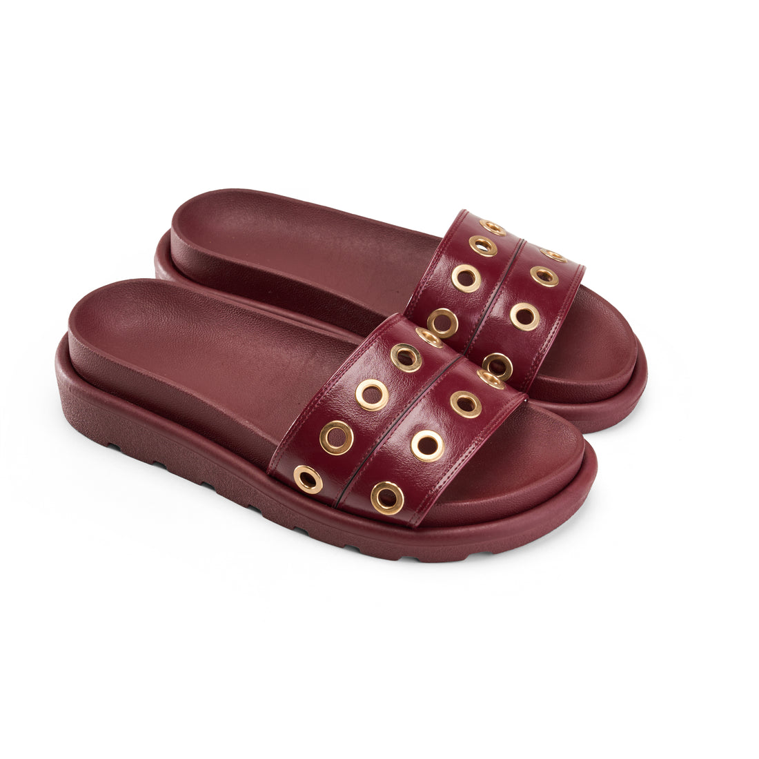 Elevate your comfort with the Grommet Detail Double Strap Slipper in marron. Expertly designed, this...