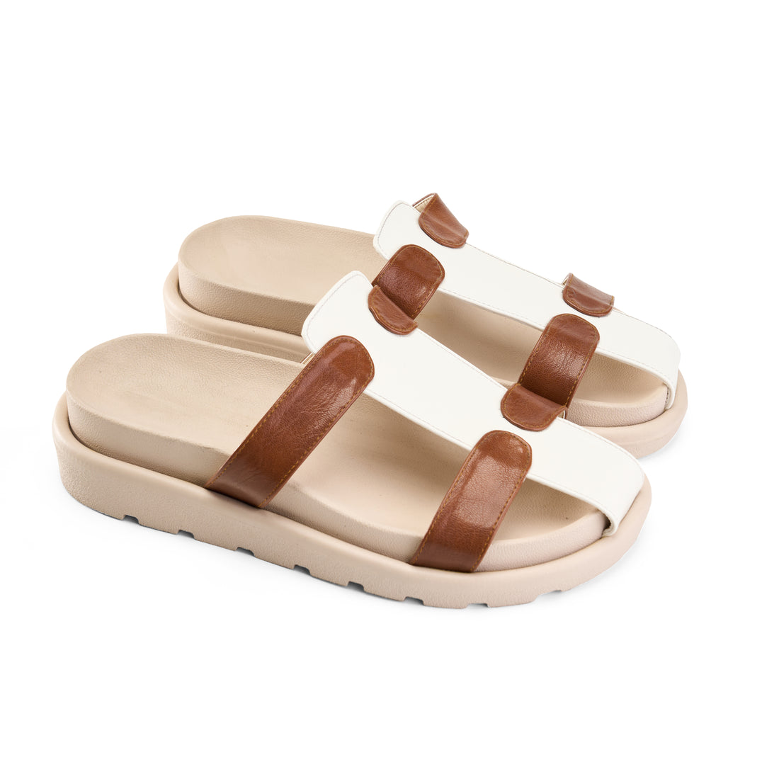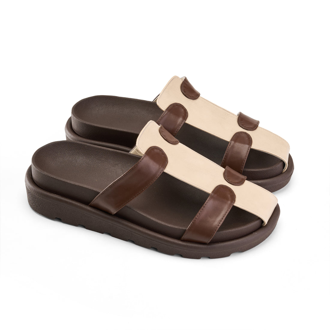 Multicolor Double Strap Slipper -marron