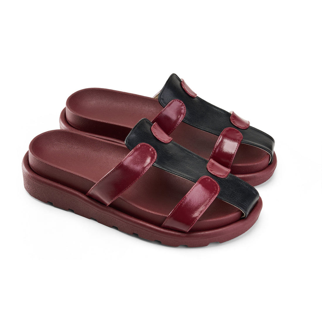 Multicolor Double Strap Slipper -black
