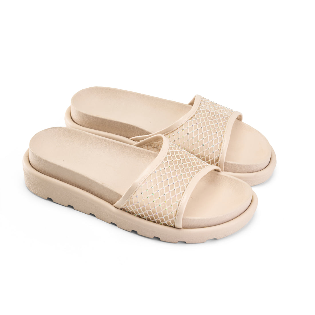Mesh Wide Strap Platform Slipper - beige