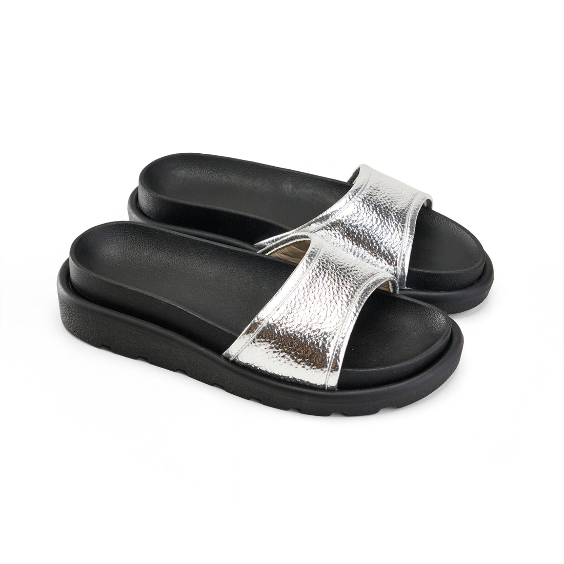 Linear Strap Slipper - Silver