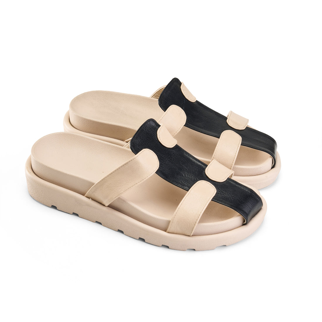 Multicolor Double Strap Slipper -beige