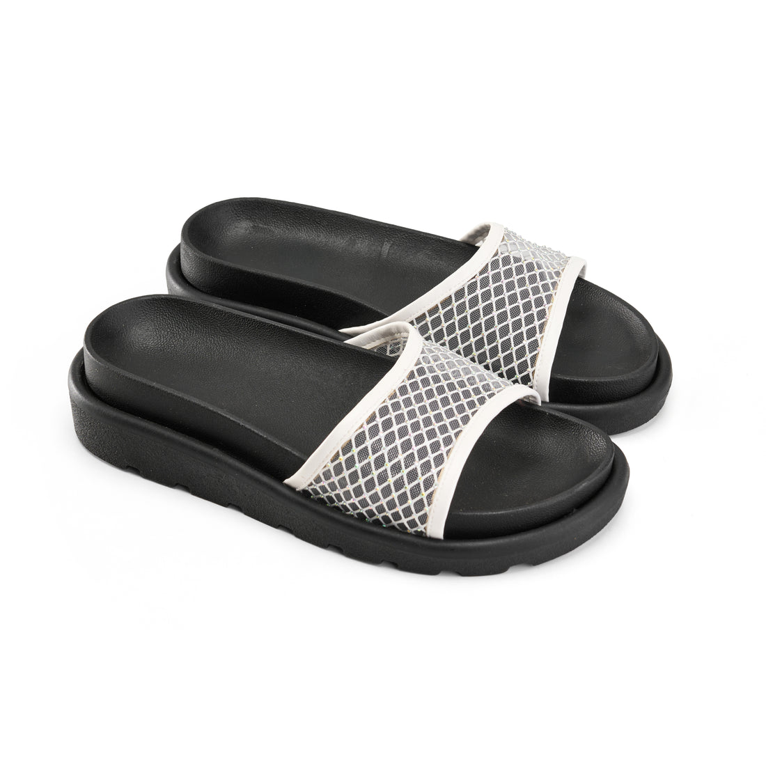 Mesh Wide Strap Platform Slipper - white