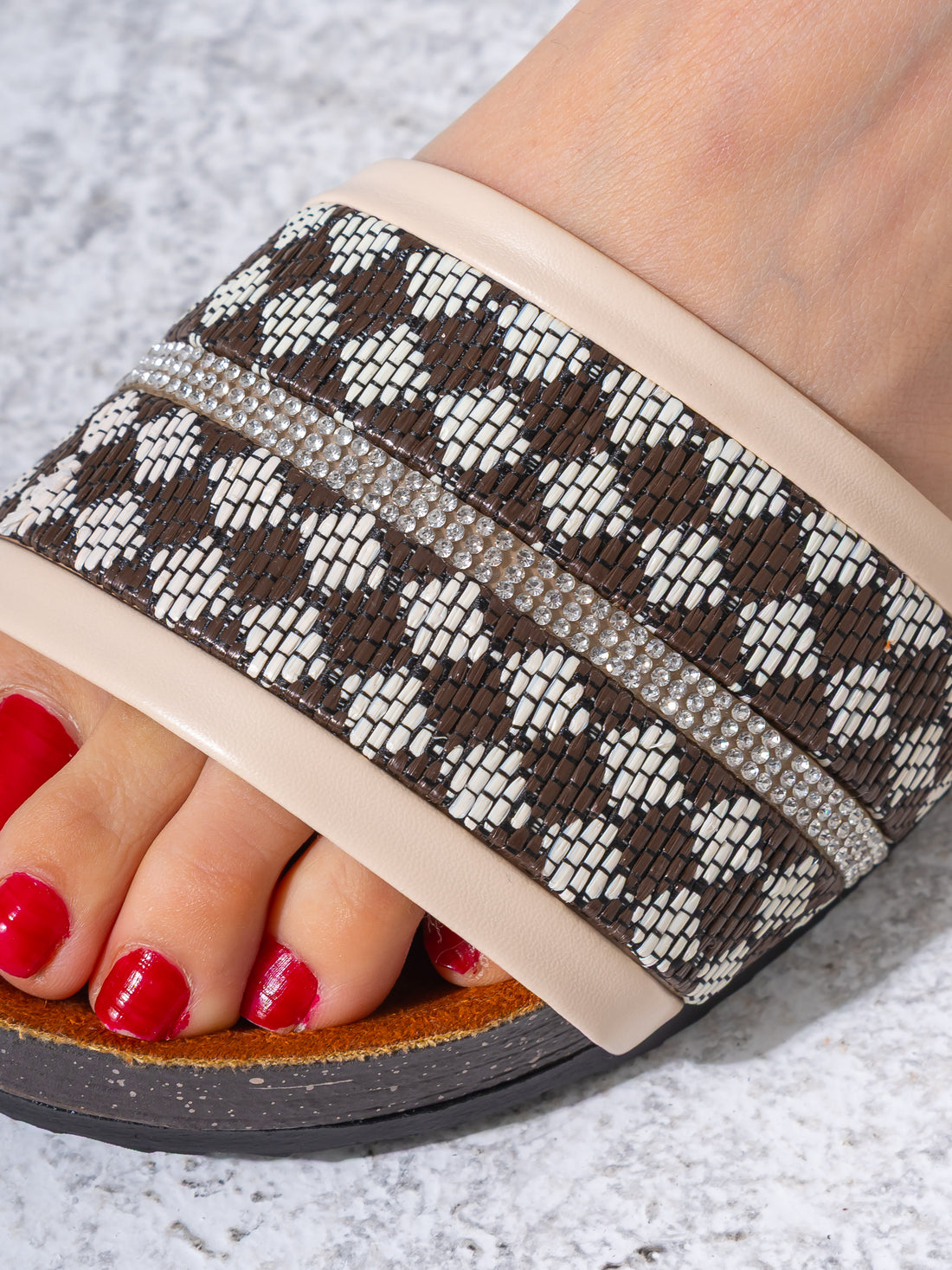 Rhinestone Strip Woven Slipper - BROWN