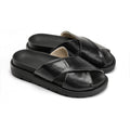 Experience refined comfort with the Crisscross Slide Slipper in black. Designed for effortless wear, its overlapping straps provide a secure fit while allowing breathability. The minimalist silhouette pairs seamlessly with casual or lounge attire, making it an essential addition to your footwear collection. Crafted to support all-day wear, this slipper balances style and function with expert precision.