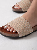 Elevate your style game with our Braided Glam Slides in beige. Featuring a unique braided design, these slides are both chic and comfortable. Perfect for any occasion, these slides will add a touch of glam to any outfit. Upgrade your wardrobe with these stylish slides today.