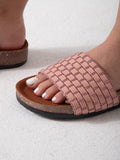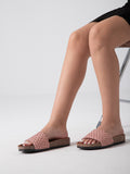 These pink Braided Glam Slides are expertly crafted with a unique braided design, adding a touch of glam to any outfit. Made with high-quality materials, these slides offer both style and comfort. Ideal for any occasion, these slides are a must-have for any fashion-forward individual.