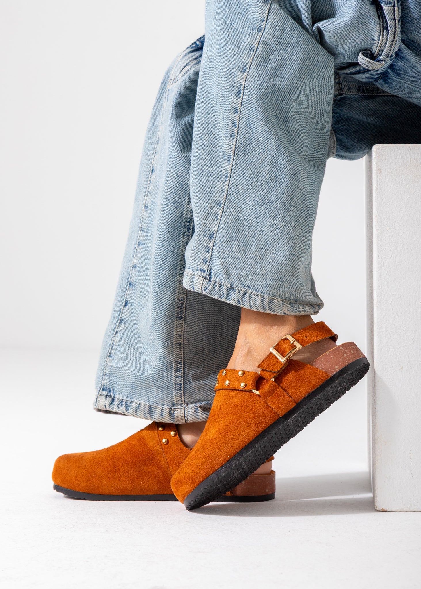 The Slingback Clog in camel combines classic design with practical comfort. Featuring a secure slingback strap and a contoured footbed, it offers stable support for all-day wear. The rich camel color adds versatility, making it easy to pair with various outfits while maintaining a polished, professional look. Durable construction ensures lasting performance, ideal for those seeking both style and functionality in their footwear.