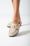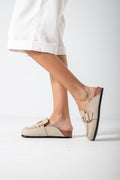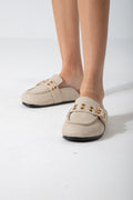 The Riviera Loafer Mule in beige combines classic loafer style with the ease of a mule. Crafted for a comfortable fit, its neutral beige color complements various outfits, making it an essential addition to any wardrobe. Perfect for effortless wear, this shoe offers both sophistication and practicality in one refined design.