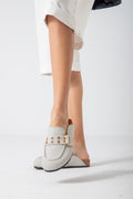 The Riviera Loafer Mule in gray combines classic loafer design with the ease of a slip-on mule. Crafted for comfort and style, its sleek silhouette and neutral tone make it ideal for both professional and casual settings. This versatile shoe offers a refined look while ensuring effortless wear throughout your day.
