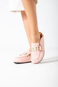 The Riviera Loafer Mule in pink blends classic loafer design with effortless mule style, offering versatile elegance and comfort. Crafted to provide easy slip-on wear, its soft pink shade adds a refined touch to both casual and formal outfits. Ideal for those seeking a sophisticated yet practical shoe, it balances timeless appeal with modern convenience.