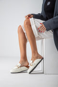 The Riviera Loafer Mule in white combines classic loafer elegance with the ease of a backless mule design. Crafted for expert style and comfort, this slip-on shoe features a clean white finish that complements diverse outfits, making it a versatile addition to your wardrobe. Its streamlined silhouette offers a refined yet relaxed look, ideal for both casual and semi-formal occasions.
