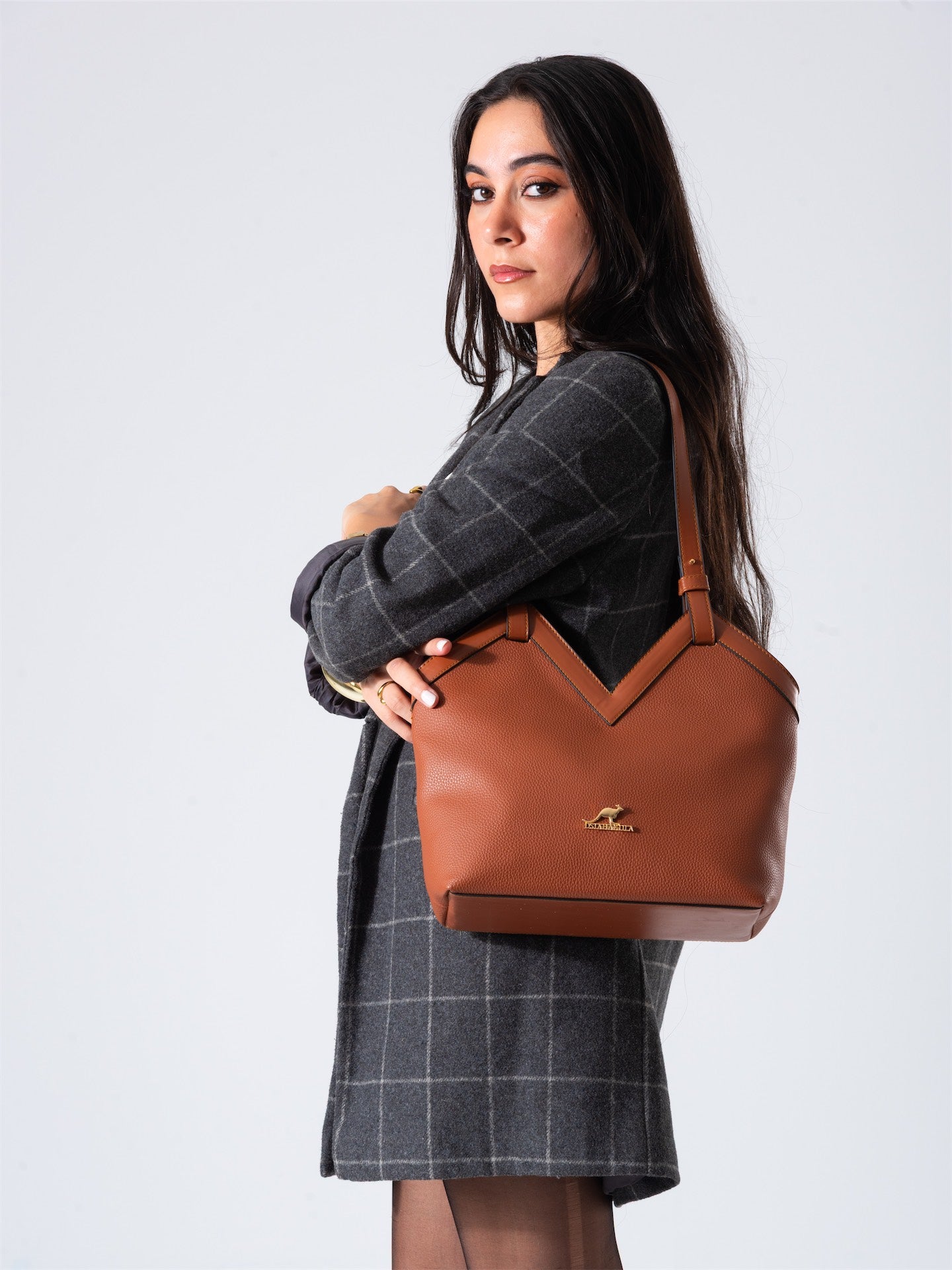 The V-Cut Shoulder Bag in camel is a sophisticated accessory designed for the discerning traveler. Its distinctive V-cut silhouette creates a modern aesthetic while the warm camel tone complements any wardrobe. Crafted with attention to detail, this shoulder bag offers practical everyday functionality without compromising on style. The structured design provides reliable support for your essentials, making it an ideal companion for work, travel, or casual outings. A versatile piece that bridges the gap between contemporary fashion and timeless elegance.