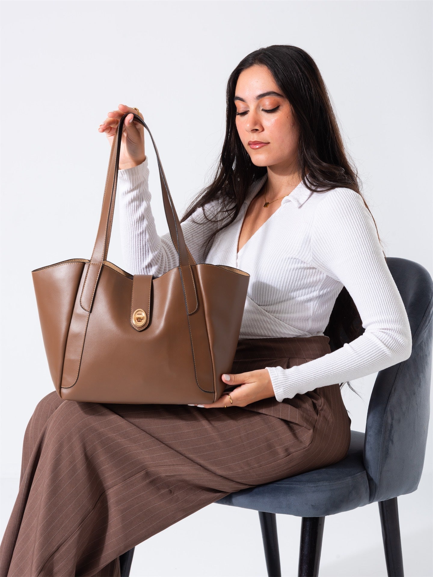 Crafted with understated elegance, this minimal turn closure bag in light brown combines timeless design with practical functionality. The refined turn-lock mechanism ensures secure closure while maintaining a clean aesthetic. Constructed from quality materials, it transitions seamlessly from day to evening wear. The neutral tone pairs effortlessly with any wardrobe, making it an essential accessory for those who appreciate sophisticated simplicity and enduring style.