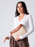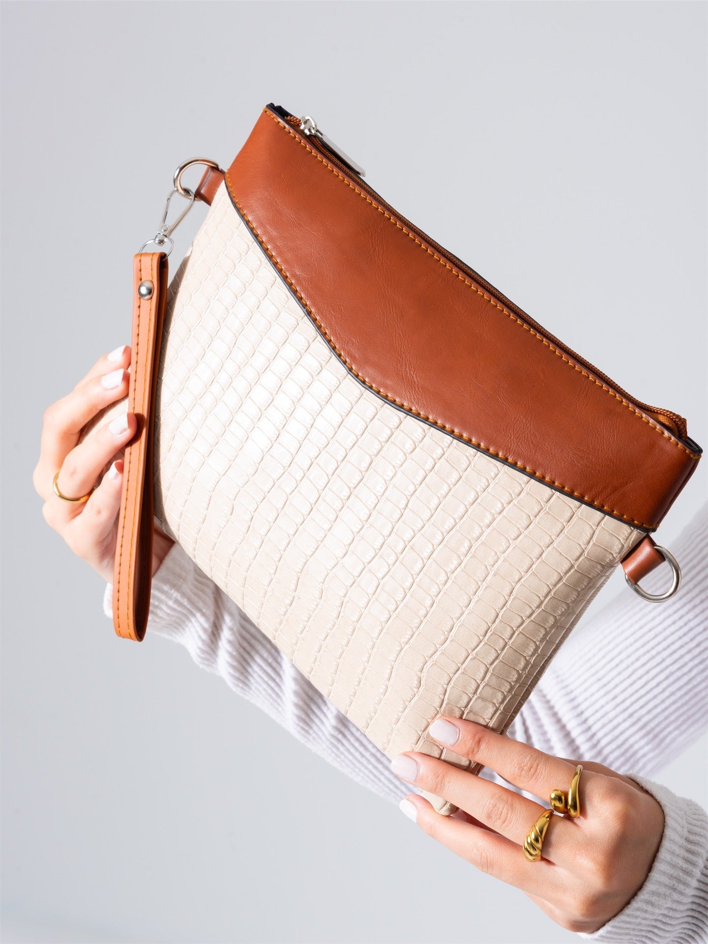 Elevate your everyday elegance with this sophisticated beige clutch, crafted to complement any occasion. The textured surface adds visual depth and tactile interest, while the compact silhouette fits seamlessly into your wardrobe essentials. Perfect for evening outings or as a refined accessory to your daytime ensemble, this clutch combines understated luxury with practical functionality. The neutral tone pairs effortlessly with any color palette, making it a versatile investment piece for the discerning collector.
