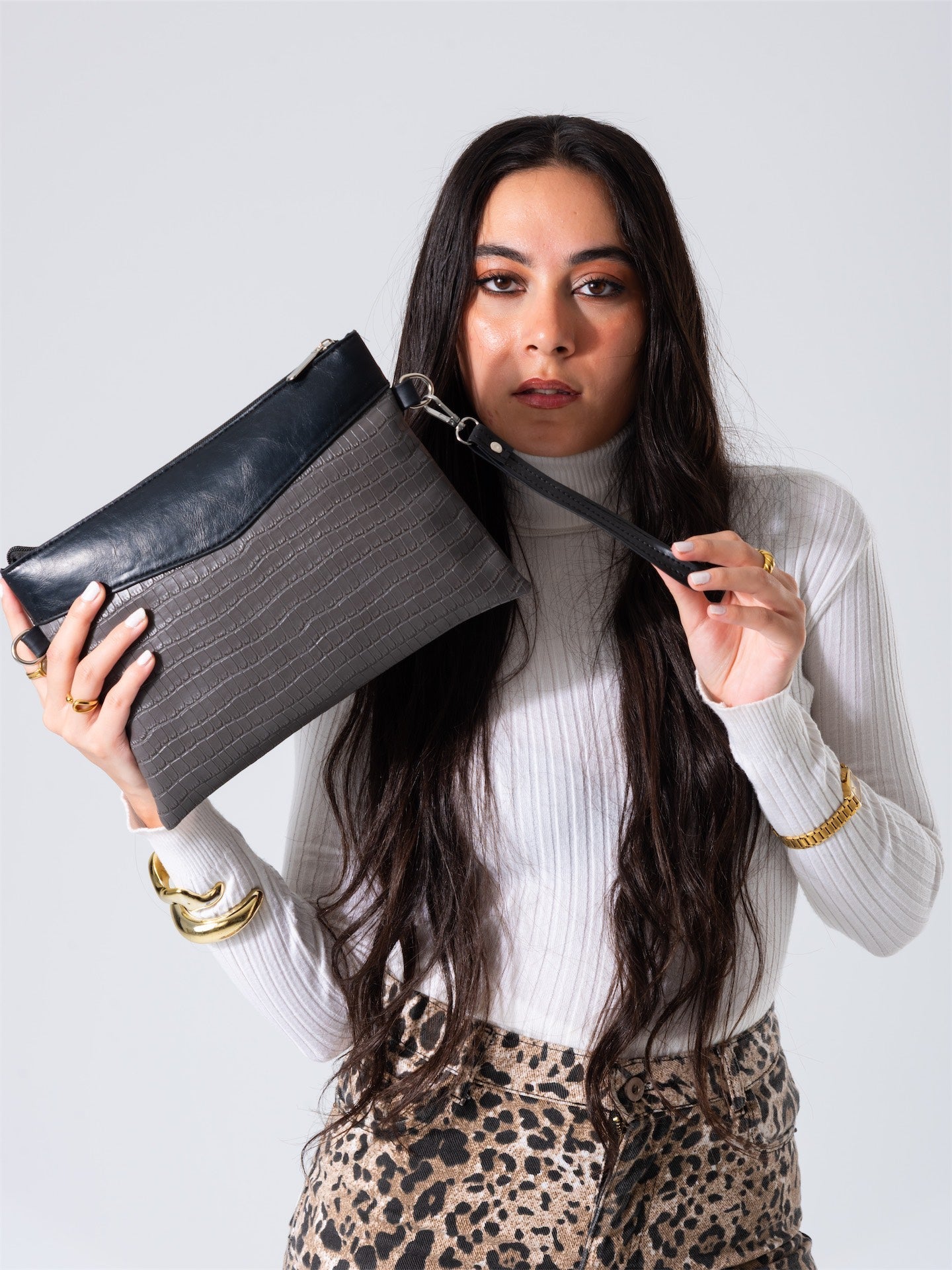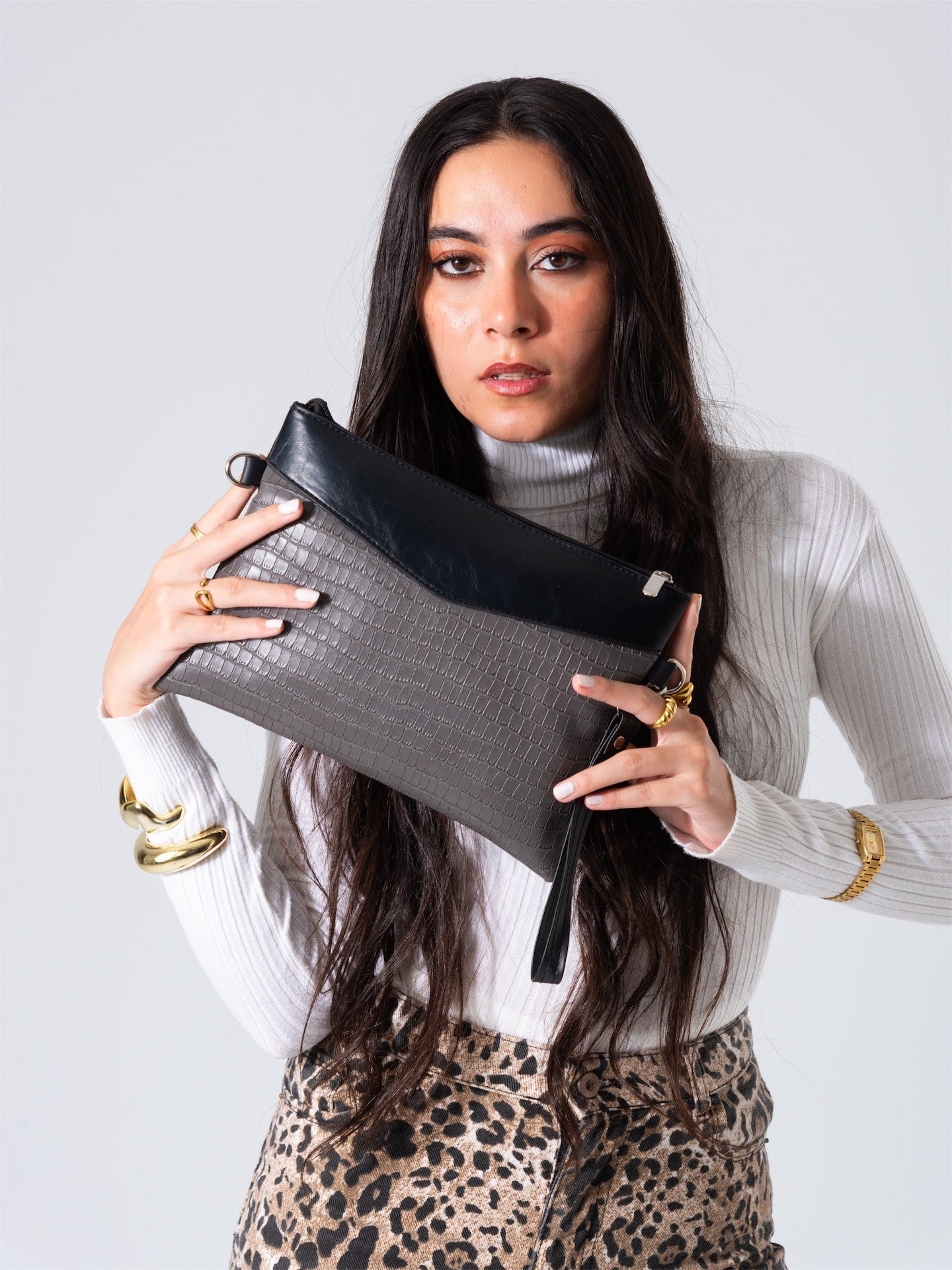 Elevate your evening ensemble with this sophisticated metallic texture clutch in refined gray. Crafted with meticulous attention to detail, the shimmering surface catches light beautifully, making it an ideal companion for formal occasions and upscale events. The compact silhouette offers practical elegance, fitting essentials while maintaining a sleek profile. Perfect for those who appreciate understated luxury and timeless accessories that transcend seasonal trends.
