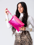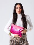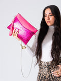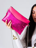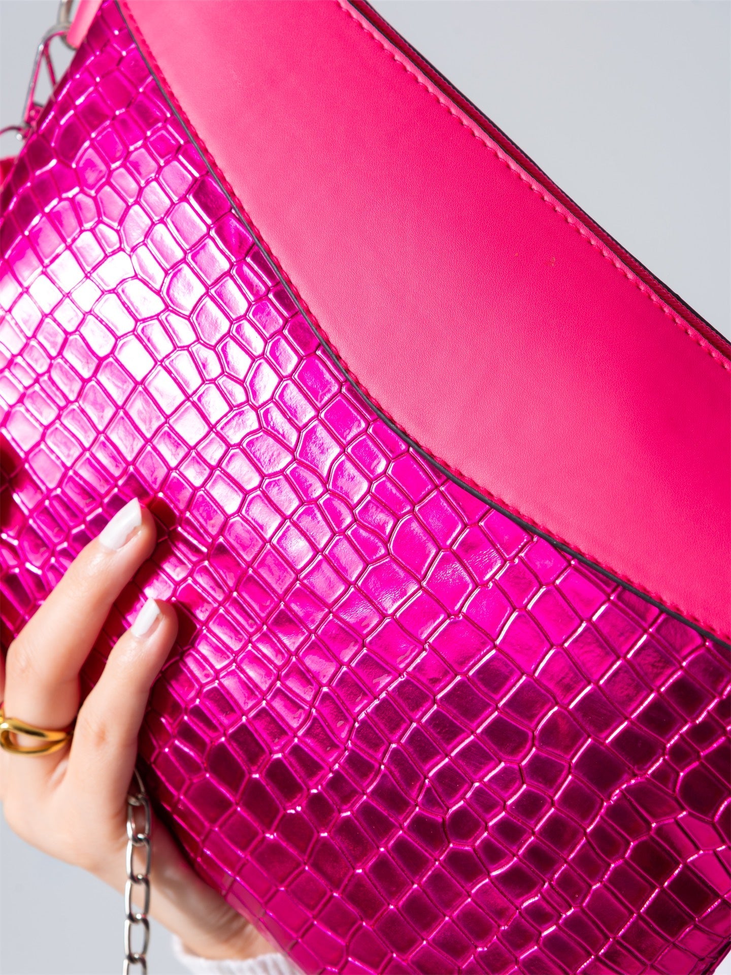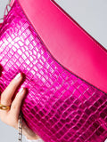 Elevate your evening ensemble with this sophisticated metallic texture clutch in blush pink. Crafted with meticulous attention to detail, the shimmering surface catches light beautifully, making it an ideal companion for formal occasions and upscale events. The compact silhouette offers practical elegance, fitting essentials while maintaining a refined aesthetic. Perfect for those who appreciate understated luxury and timeless style.