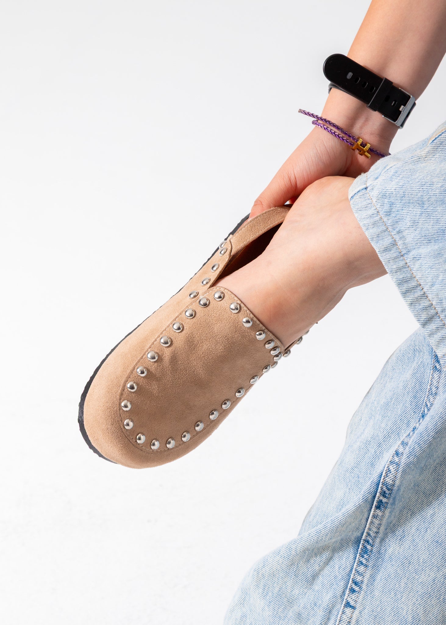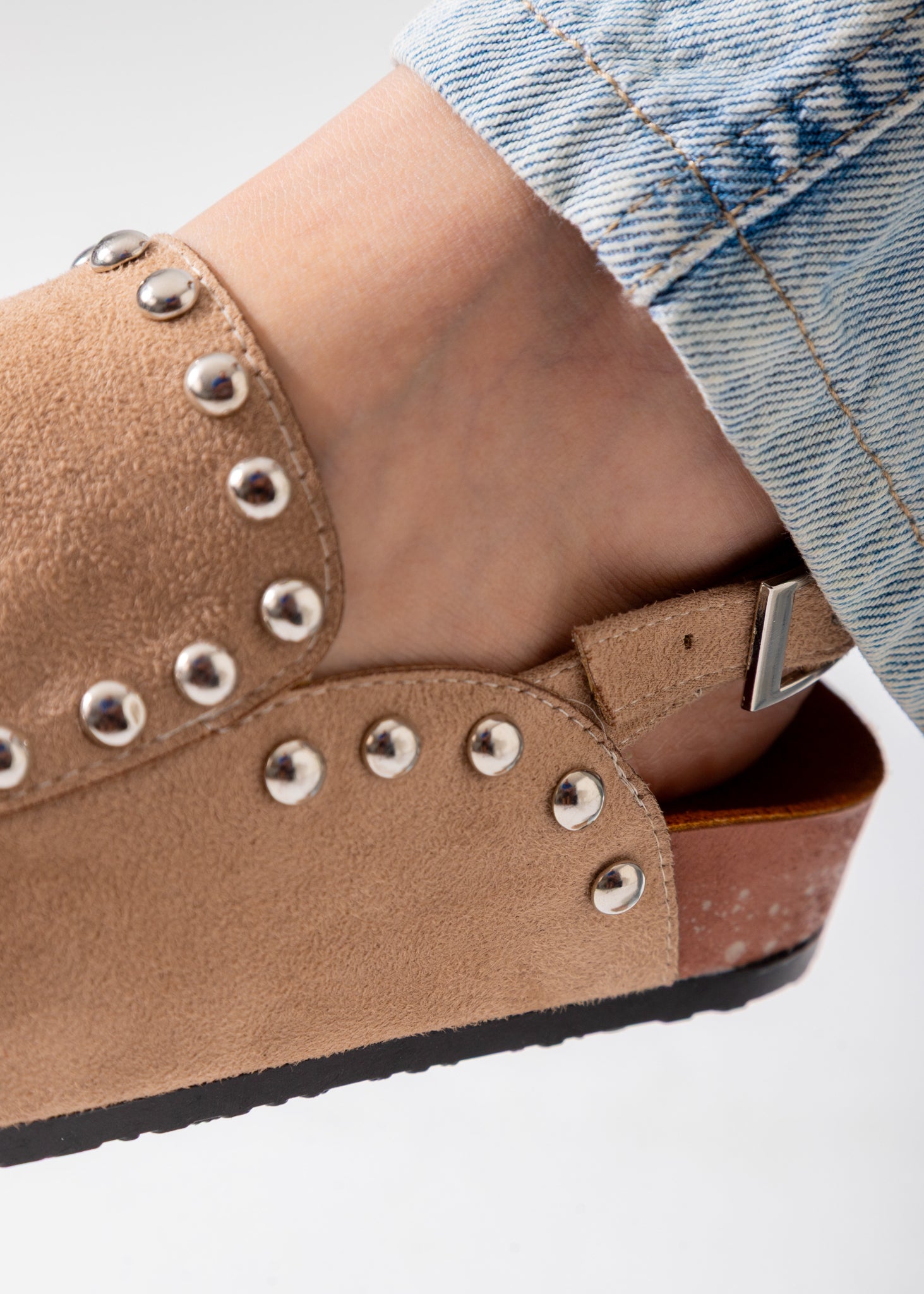 Studded Suede Clog-beige