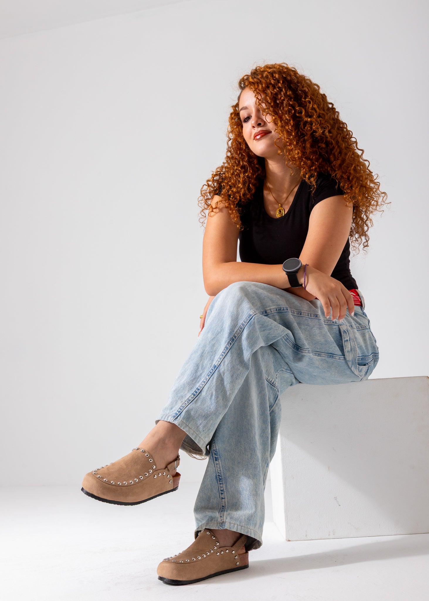 Crafted from smooth beige suede, these studded clogs blend timeless design with modern edge. The stud detailing adds subtle sophistication, while the durable sole ensures stability and comfort for all-day wear. Perfect for those seeking a stylish yet practical footwear option that elevates any outfit.