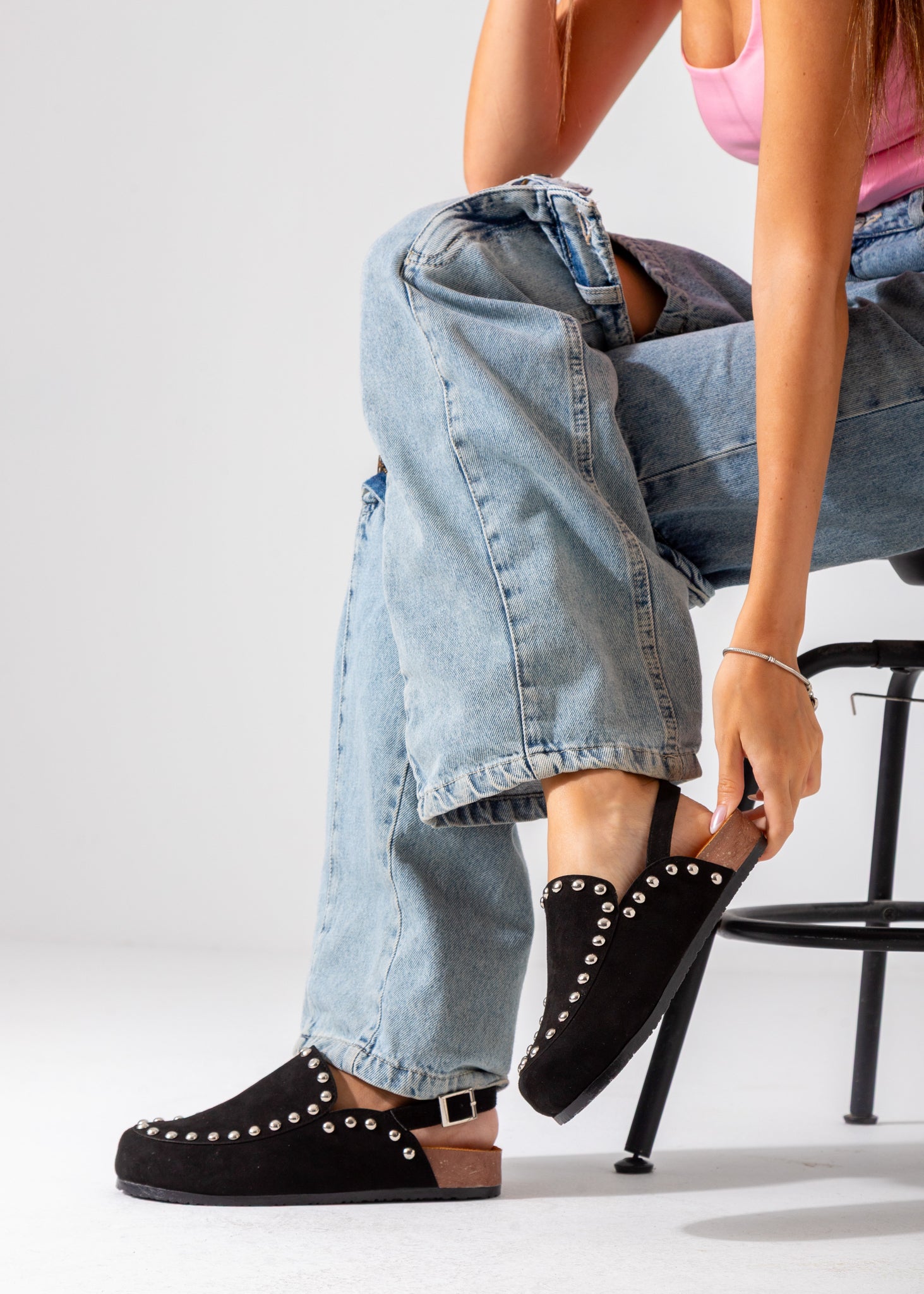 Studded Suede Clog-black