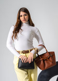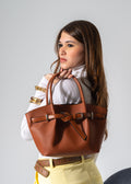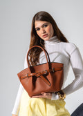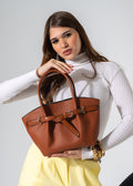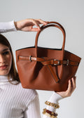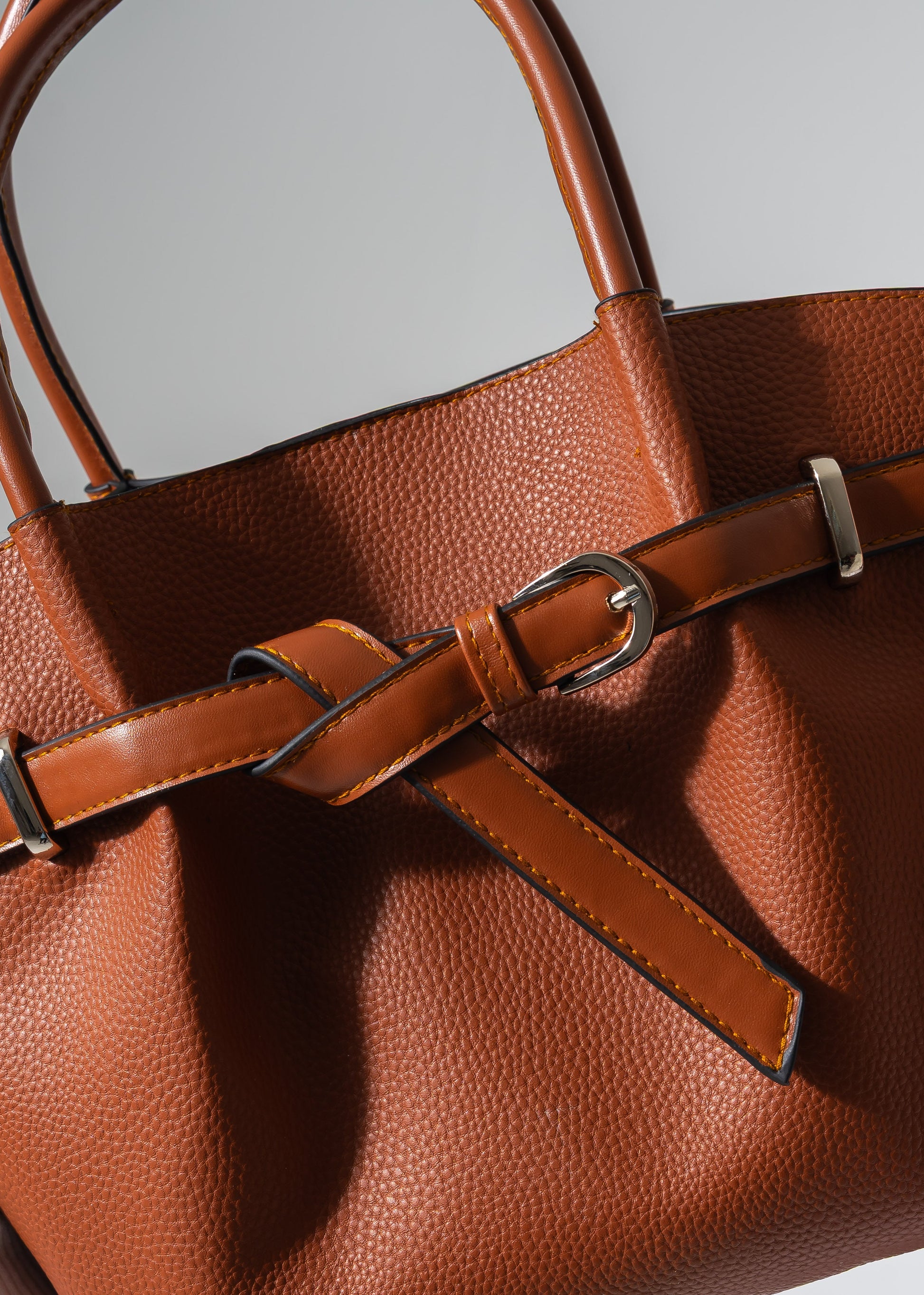 Belted Pebbled Hand Bag - camel