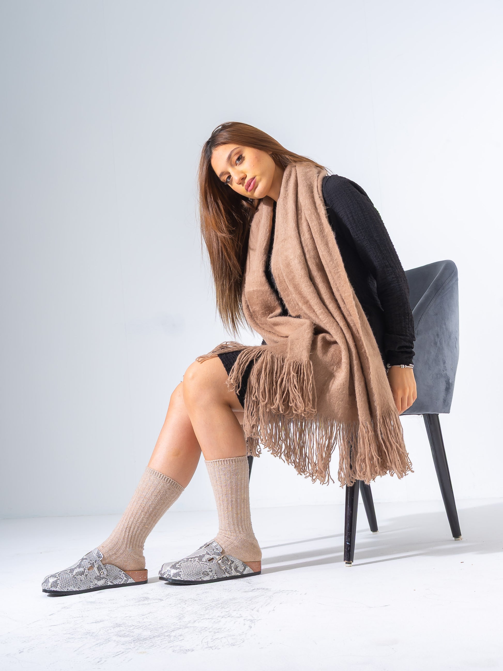 Textured Animal Print Cork-Sole Clogs Elevate your casual footwear collection with these distinctive clogs, featuring a striking animal print design that commands attention. The textured upper provides visual depth and tactile interest, while the cork sole delivers exceptional comfort and natural shock absorption for all-day wear. Lightweight yet durable, these clogs transition seamlessly from everyday errands to relaxed social settings. The cork construction offers superior breathability and moisture-wicking properties, keeping your feet comfortable in warm climates. Perfect for those seeking a statement piece that doesn't compromise on functionality or comfort.