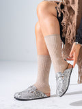 Textured Animal Print Cork-Sole Clogs- SILVER