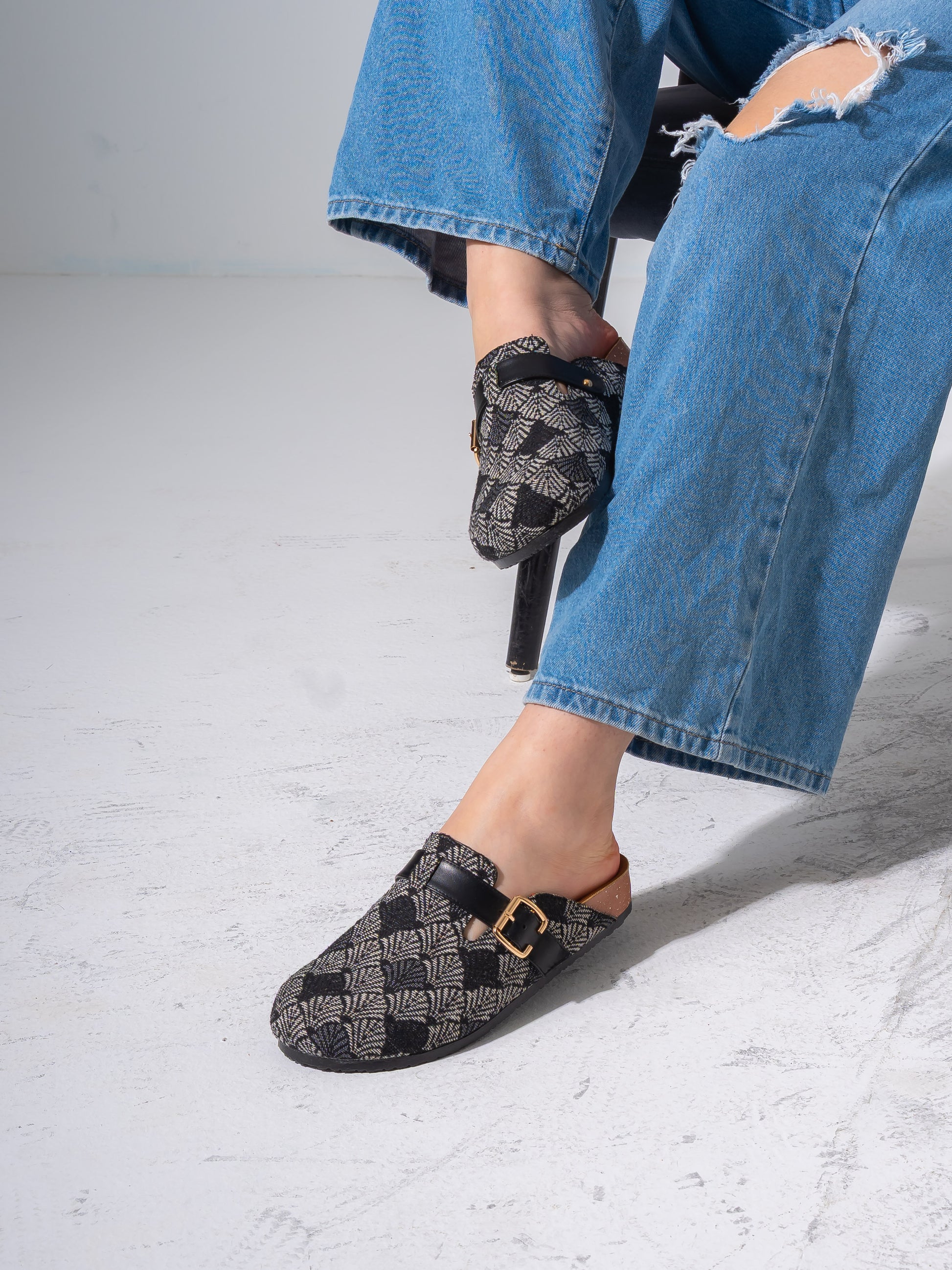 Discover the perfect blend of artistic flair and everyday comfort with our patterned woven clogs. These eye-catching slip-ons feature intricate geometric motifs and rich textures, designed for those who appreciate unique, artisanal footwear.