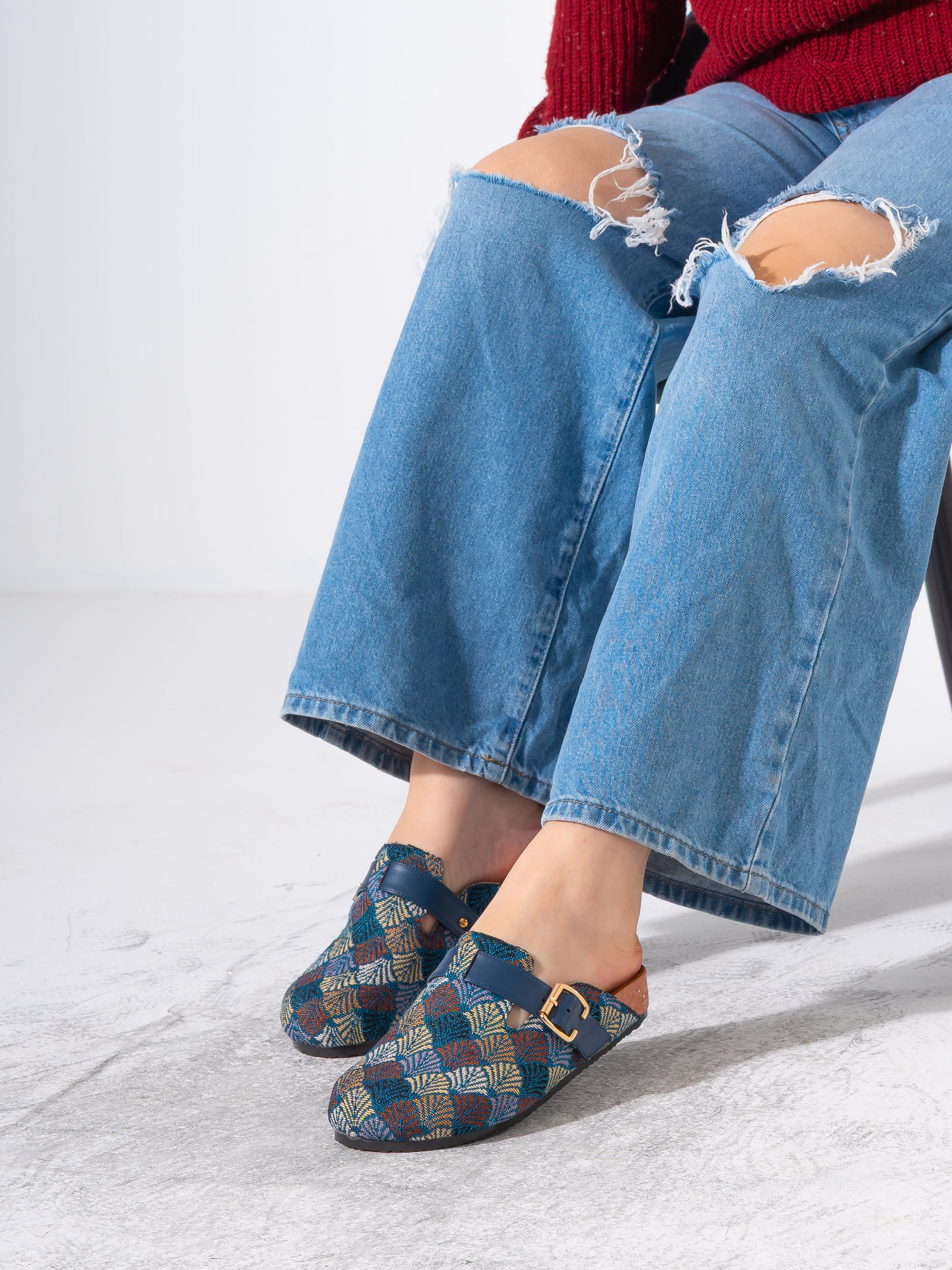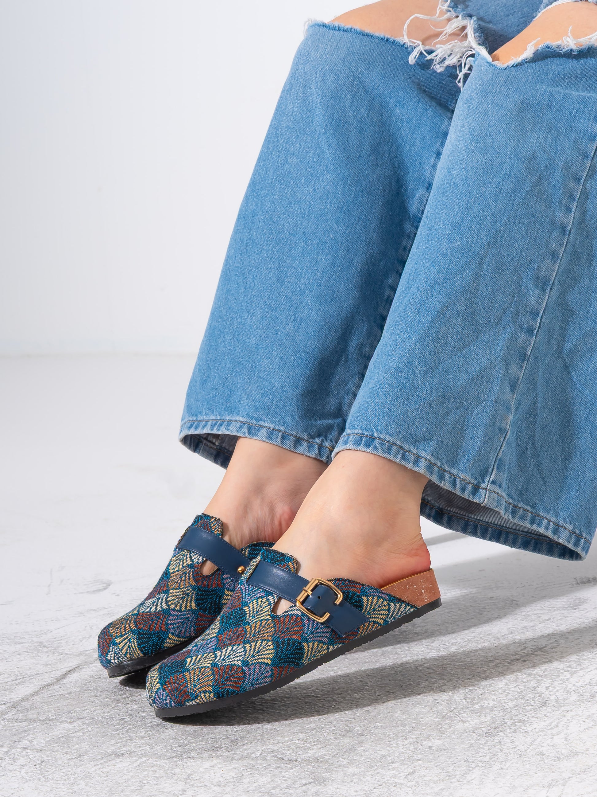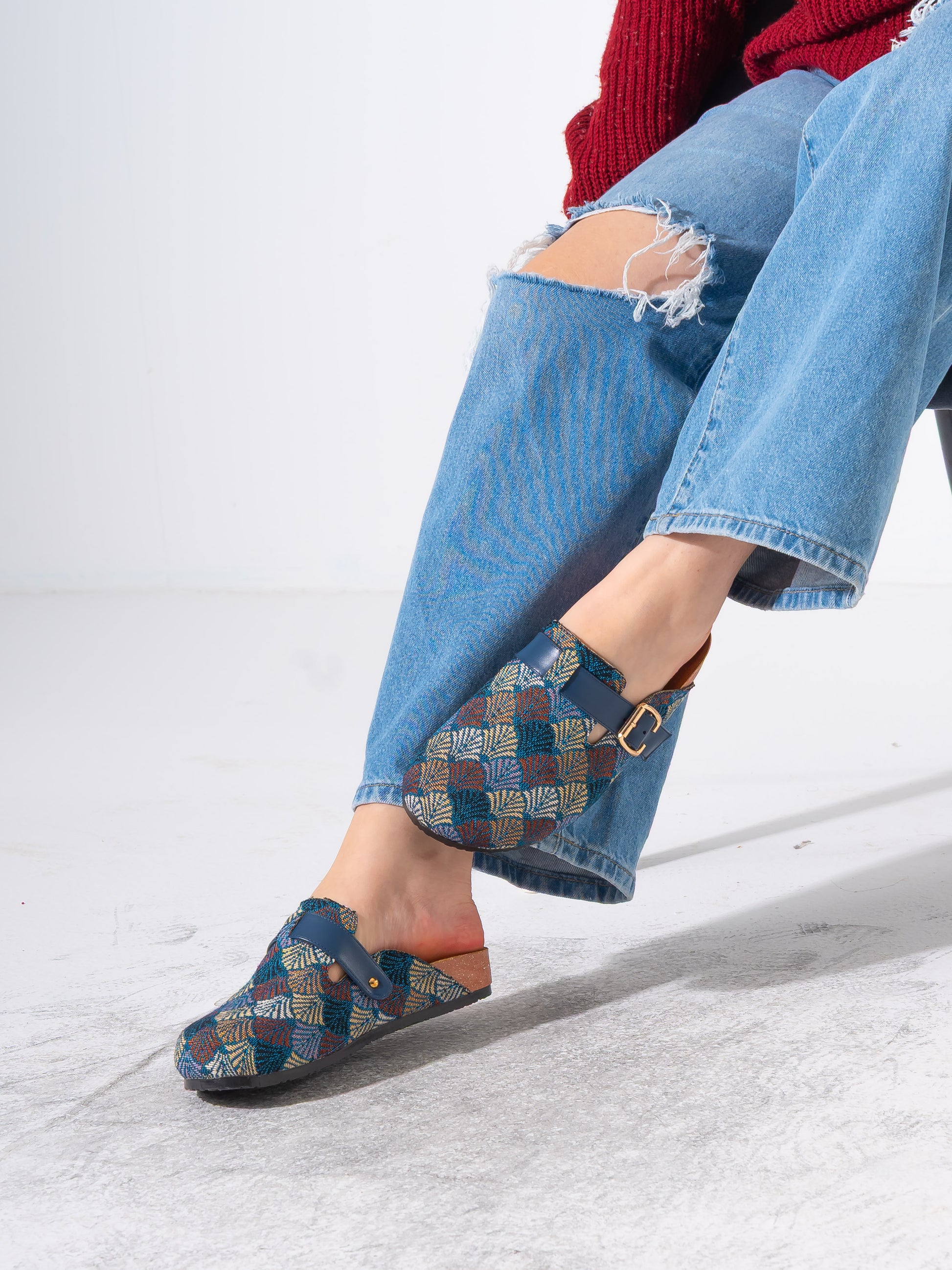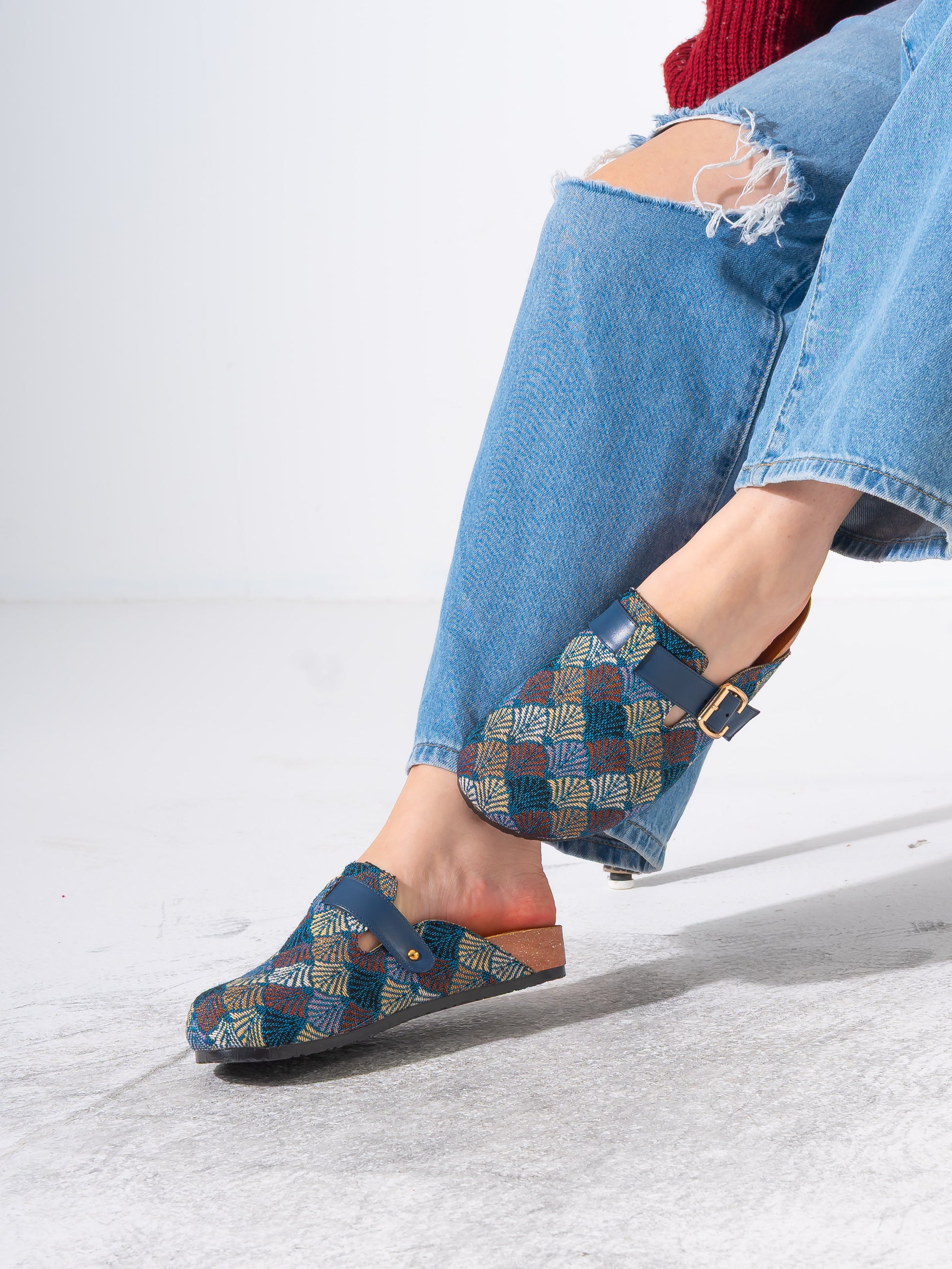 Discover the perfect blend of artistic flair and everyday comfort with our patterned woven clogs. These eye-catching slip-ons feature intricate geometric motifs and rich textures, designed for those who appreciate unique, artisanal footwear.