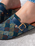 Ethnic Pattern Woven Clogs - BLUE