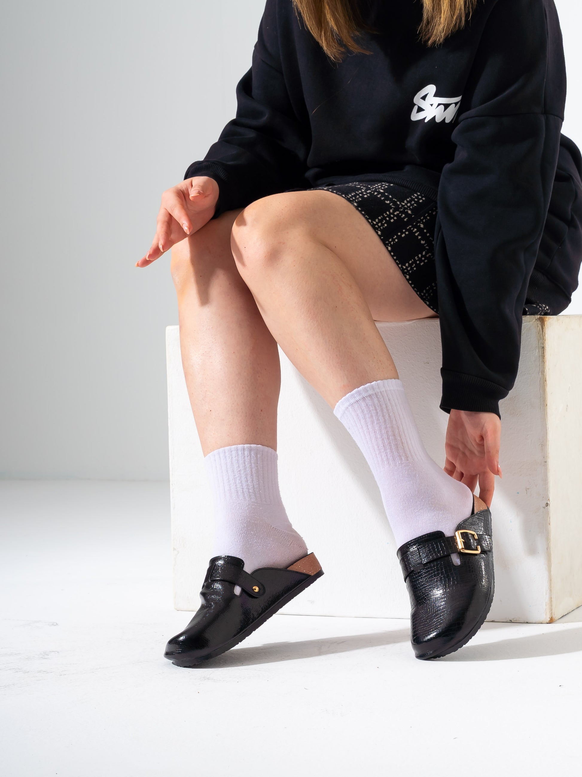 Croc-embossed buckle clogs deliver practical comfort with distinctive texture and secure fastening. The embossed surface adds visual interest while the adjustable buckle ensures a customized fit throughout the day. Lightweight construction makes these clogs ideal for casual wear, work environments, or quick errands. The durable design withstands regular use, while the easy-to-clean surface maintains its appearance effortlessly. Perfect for anyone seeking reliable footwear that balances style with everyday functionality.