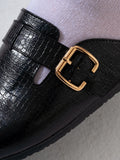 Croc-Embossed Buckle Clogs - BLACK