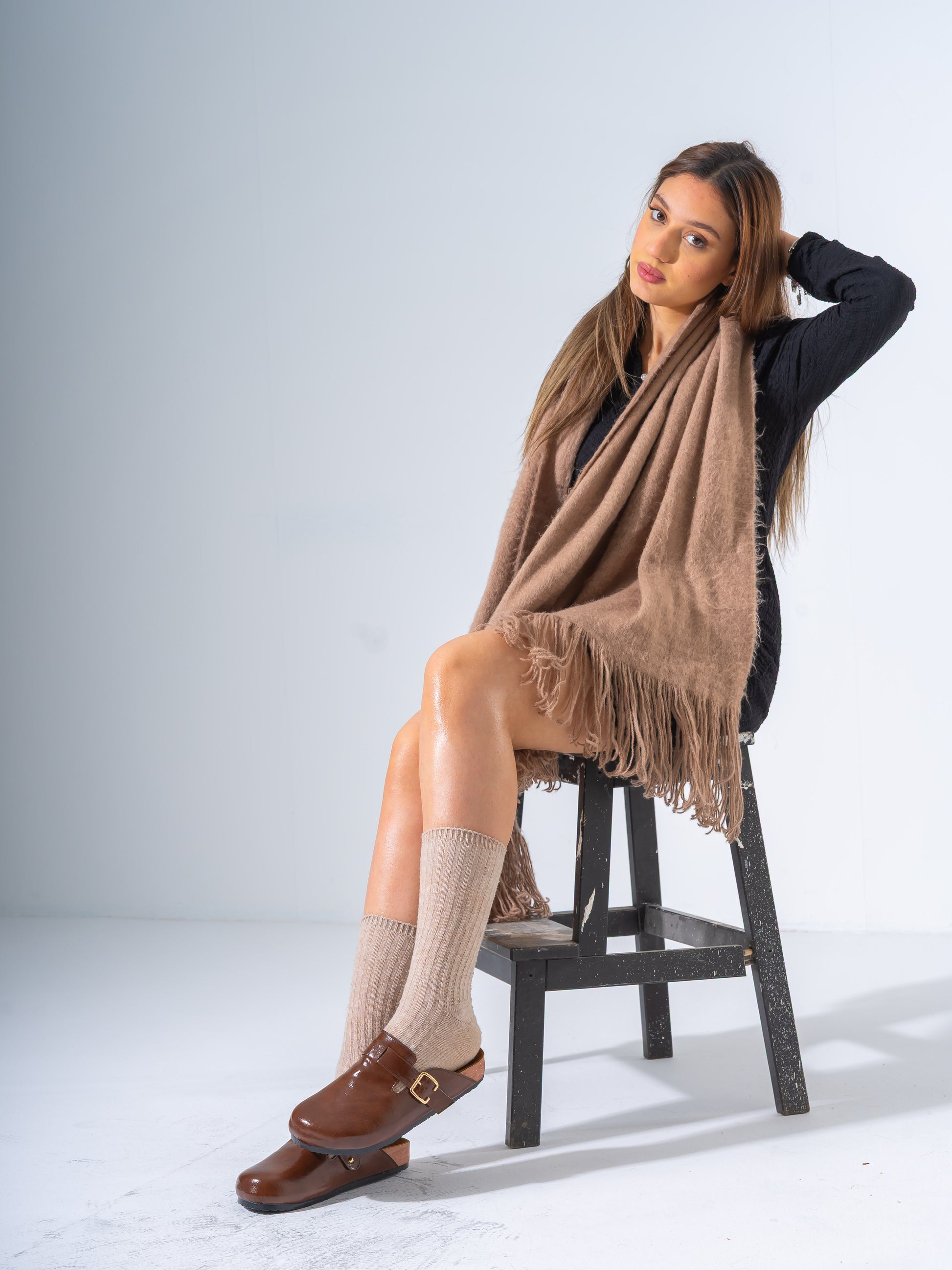 Classic Minimalist Platform Clogs - CAMEL Discover understated elegance with these platform clogs, engineered for those who value both form and function. The refined textured surface pairs seamlessly with a striking metallic buckle accent, creating a contemporary silhouette that transcends casual wear. An anatomically designed footbed delivers sustained comfort throughout the day, while the effortless slip-on construction accommodates everything from relaxed home settings to polished errands. Built for durability and versatility, these clogs represent a thoughtful investment in everyday sophistication.