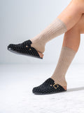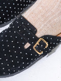 Lightweight and versatile, these micro-studded faux-suede clogs deliver contemporary style with practical comfort. The soft suede-like material pairs seamlessly with subtle metallic studs for understated sophistication. Designed for easy slip-on wear, they transition effortlessly from casual outings to relaxed social settings. The durable construction ensures lasting wear, while the cushioned footbed supports all-day comfort. Perfect for those seeking a refined yet approachable footwear option that balances aesthetic appeal with everyday wearability.