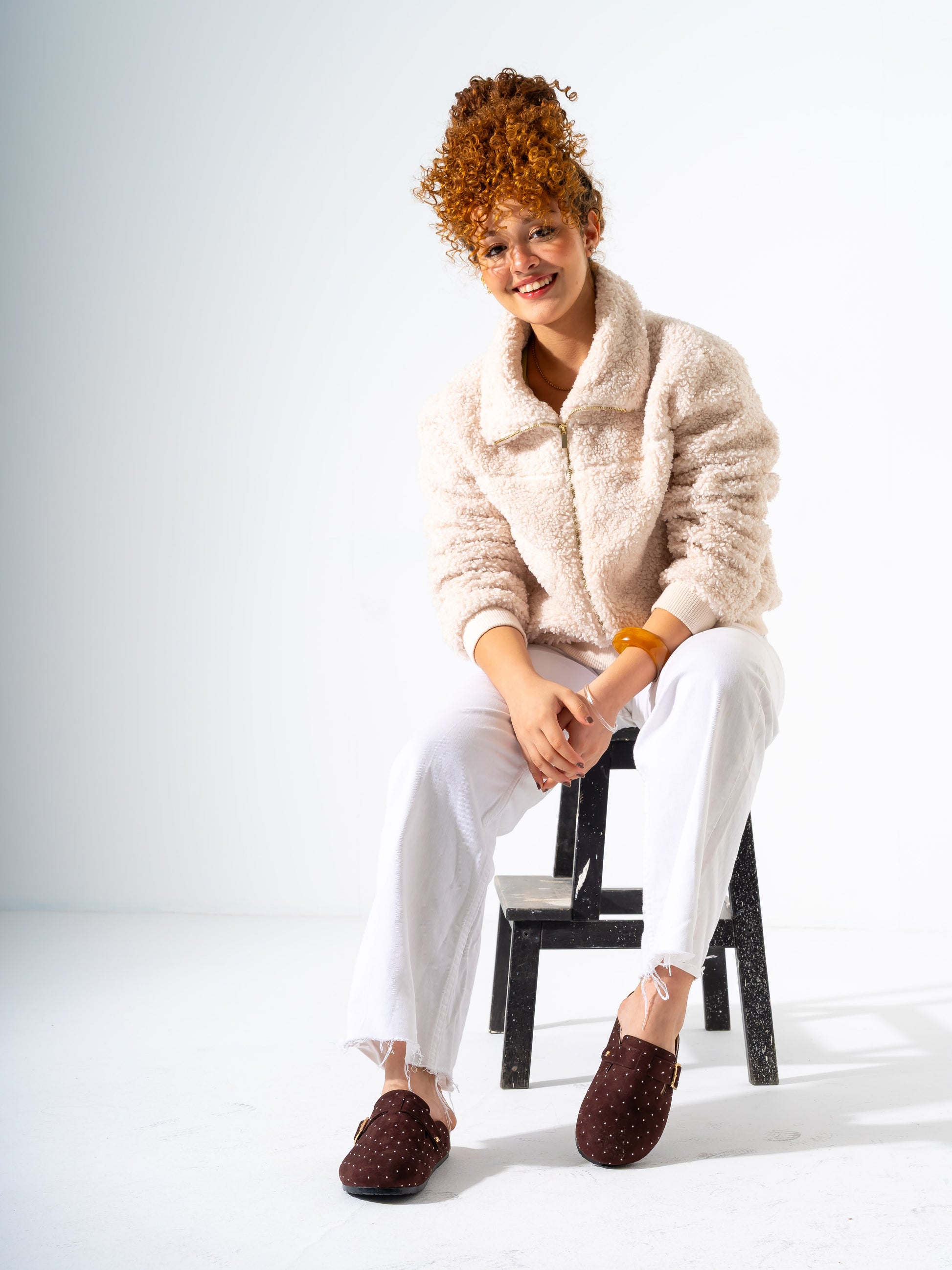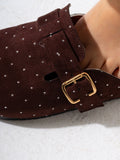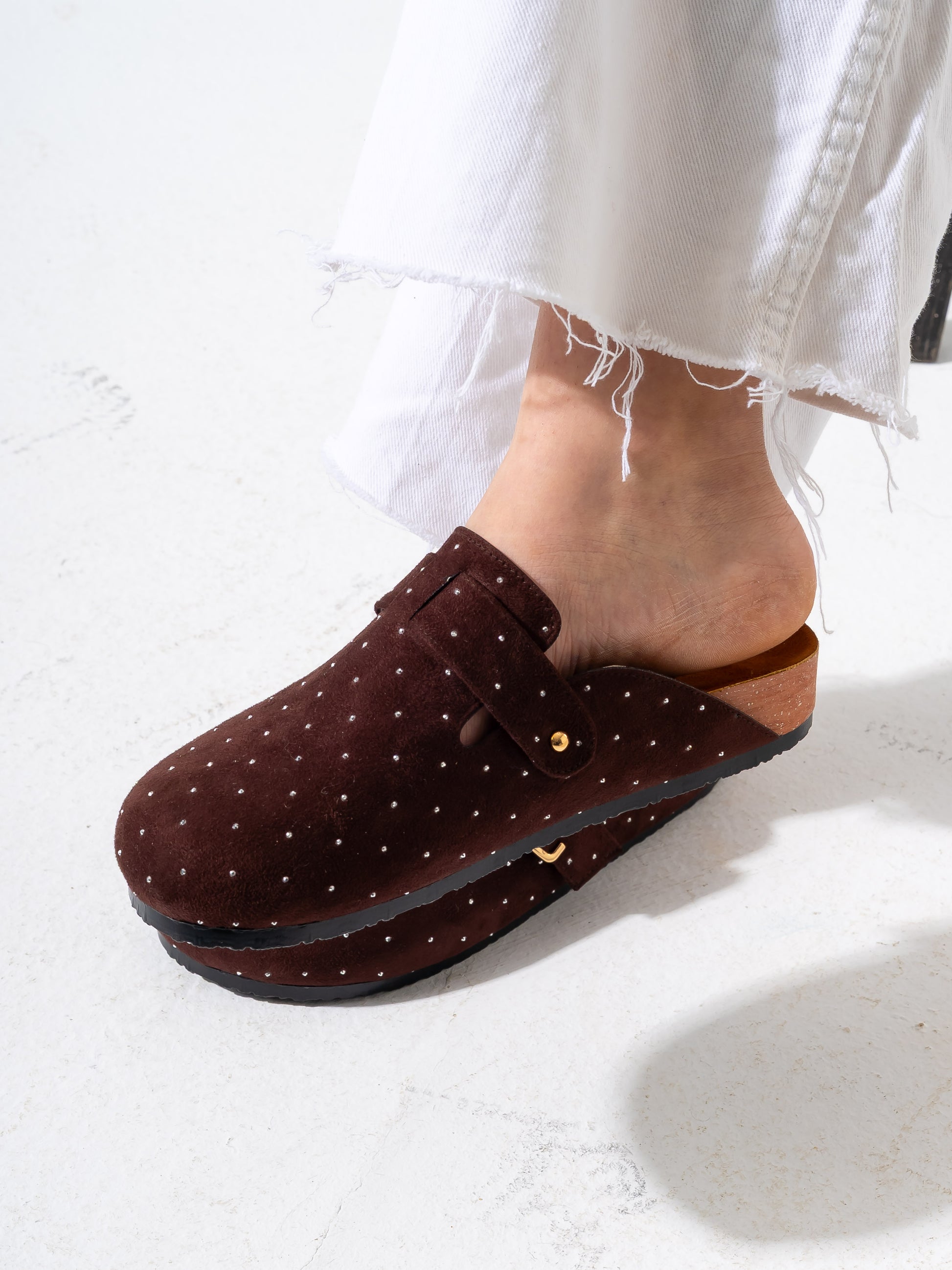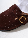 Lightweight and versatile, these micro-studded faux-suede clogs deliver contemporary style with practical comfort. The soft suede-like material pairs seamlessly with subtle metallic studs for understated sophistication. Designed for easy slip-on wear, they transition effortlessly from casual outings to relaxed social settings. The durable construction ensures lasting wear, while the cushioned footbed supports all-day comfort. Perfect for those seeking a refined yet approachable footwear option that balances aesthetic appeal with everyday wearability.