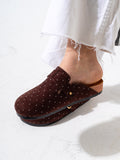 Micro-Studded Faux-Suede Clogs - BROWN