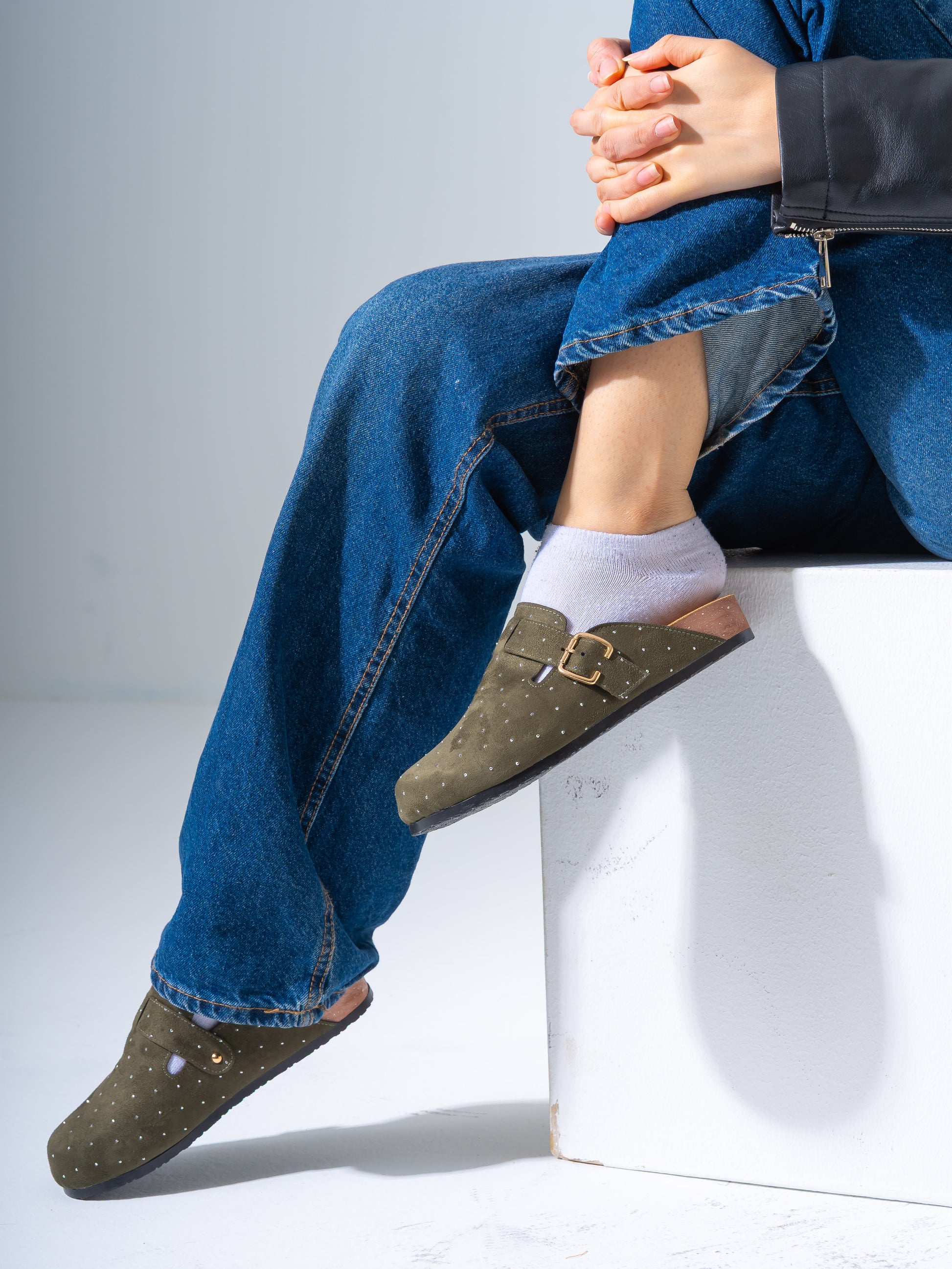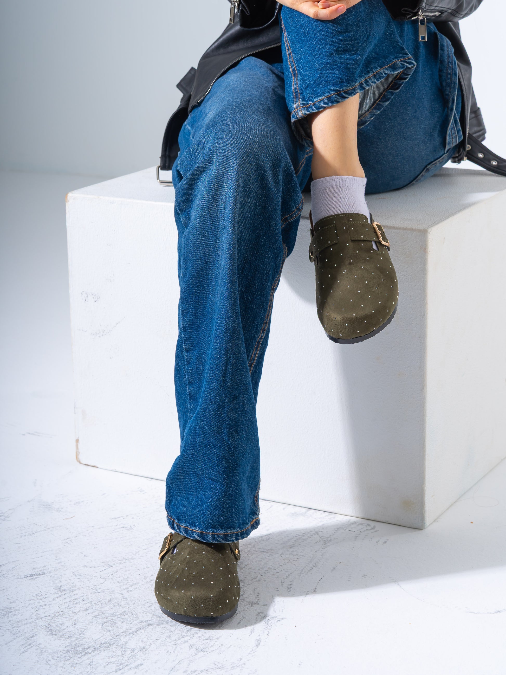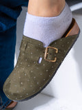 Lightweight and versatile, these micro-studded faux-suede clogs deliver contemporary style with practical comfort. The soft suede-like material pairs seamlessly with subtle metallic studs for understated sophistication. Designed for easy slip-on wear, they transition effortlessly from casual outings to relaxed social settings. The durable construction ensures lasting wear, while the cushioned footbed supports all-day comfort. Perfect for those seeking a refined yet approachable footwear option that balances aesthetic appeal with everyday wearability.