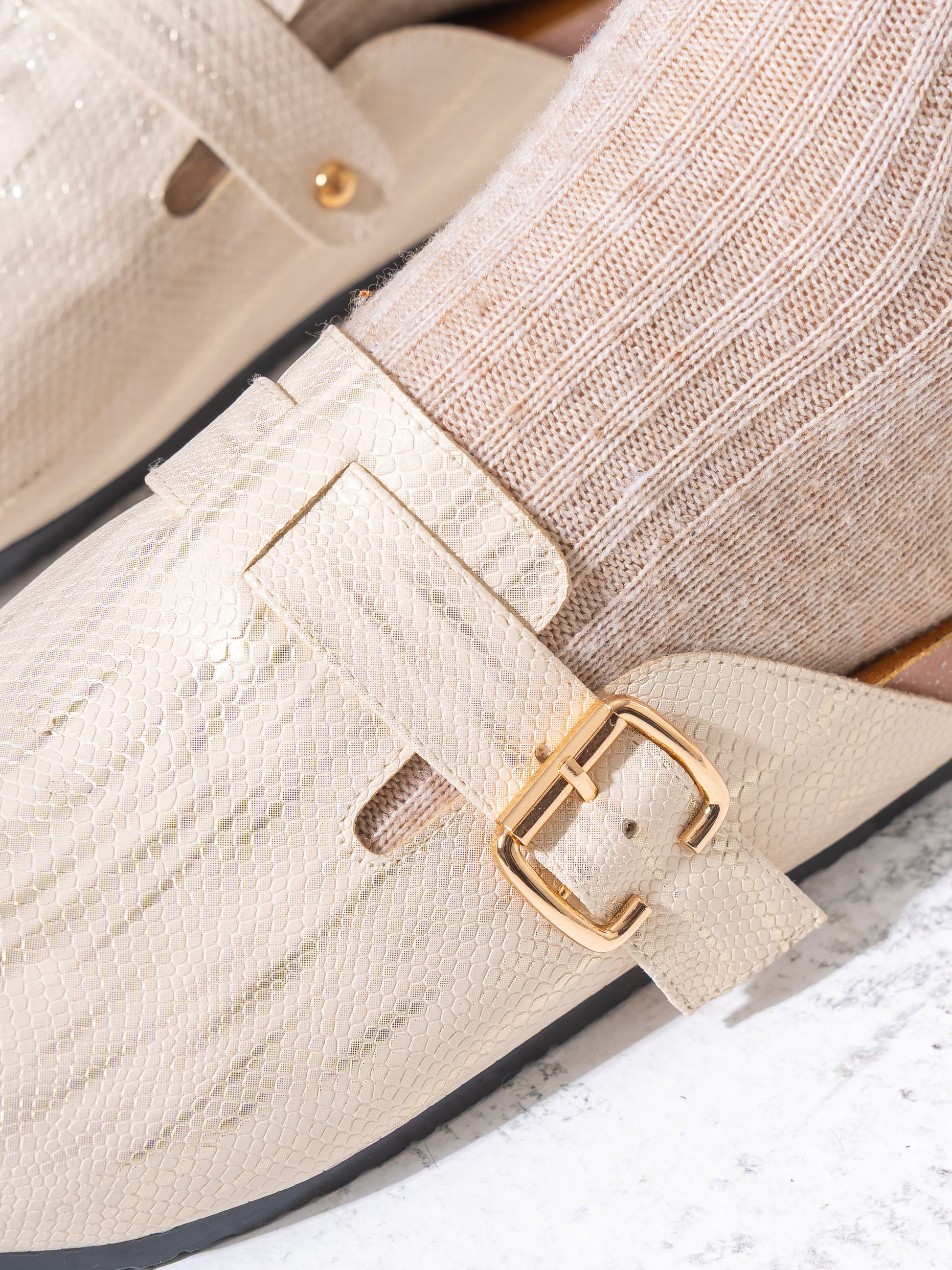 Glossy Scale-Pattern Comfort Clogs - BEIGE