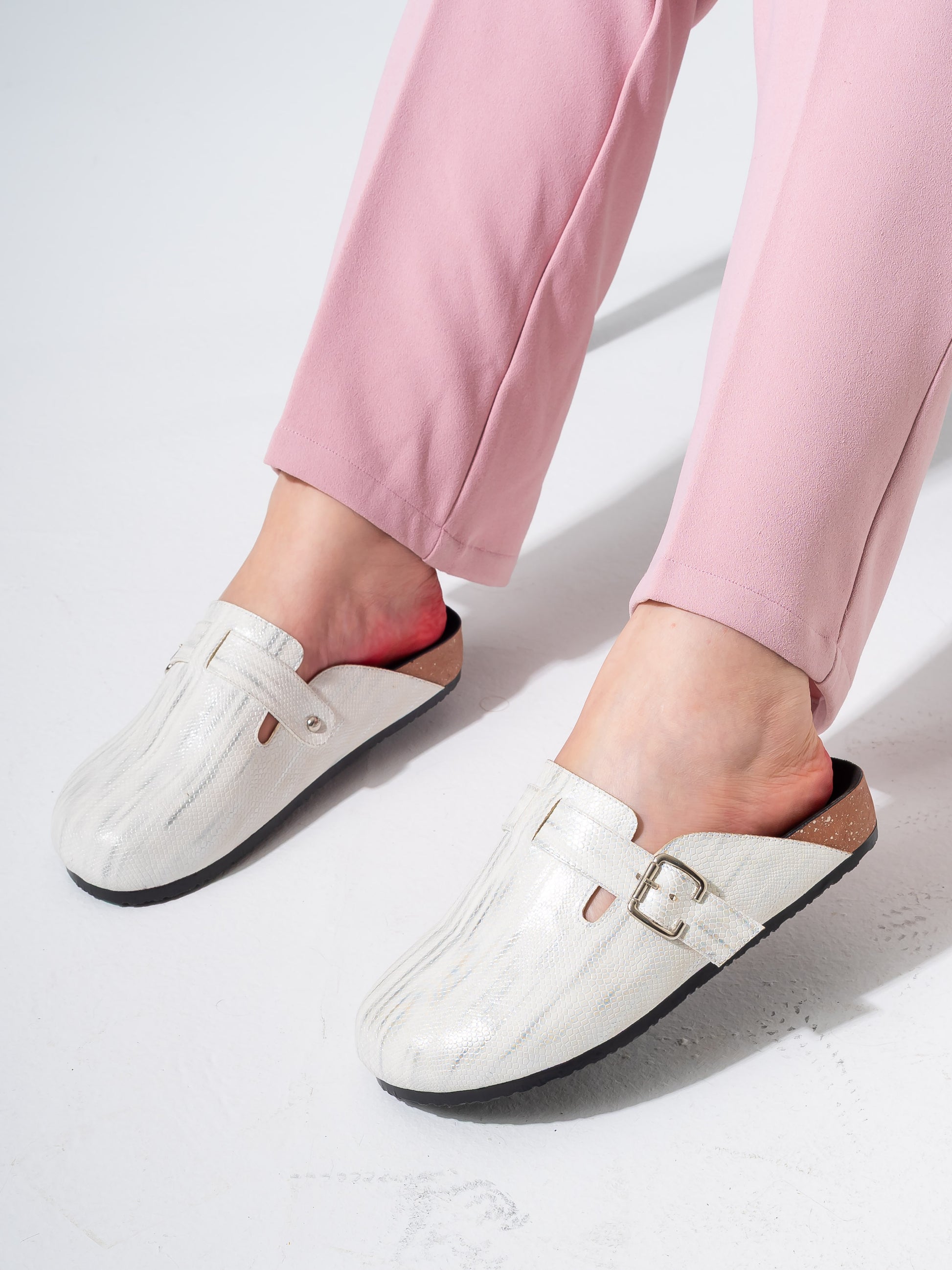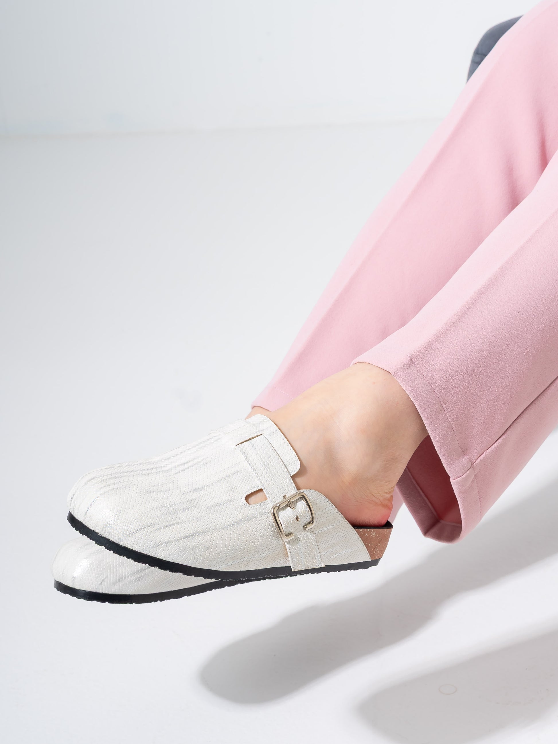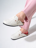 Glossy Scale-Pattern Comfort Clogs - WHITE