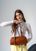 Suede-Panel Bowling Bag-camel